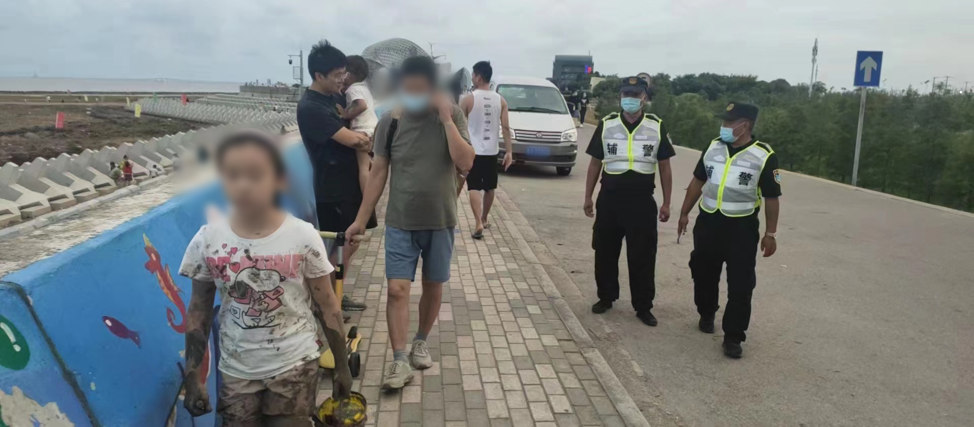 當(dāng)日17:30,焦國宏在巡邏途中遇到游客求助,稱與其8歲女兒走散,他們來回反復(fù)尋找都沒有找到,希望隊員能夠幫助尋找。因事發(fā)地地處海堤,女童父母擔(dān)心發(fā)生意外,顯得十分焦急。