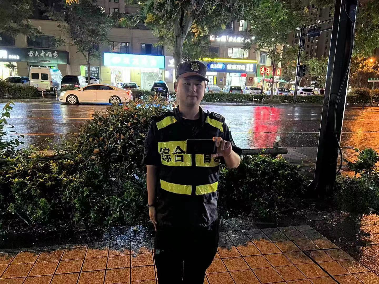 當天20:10,張彬洋在昆侖華府小區(qū)附近巡邏時,撿到一部紅米手機。因手機設(shè)有鎖屏密碼,一時無法聯(lián)系失主,便將情況上報項目負責人,并按指示在原地等待。