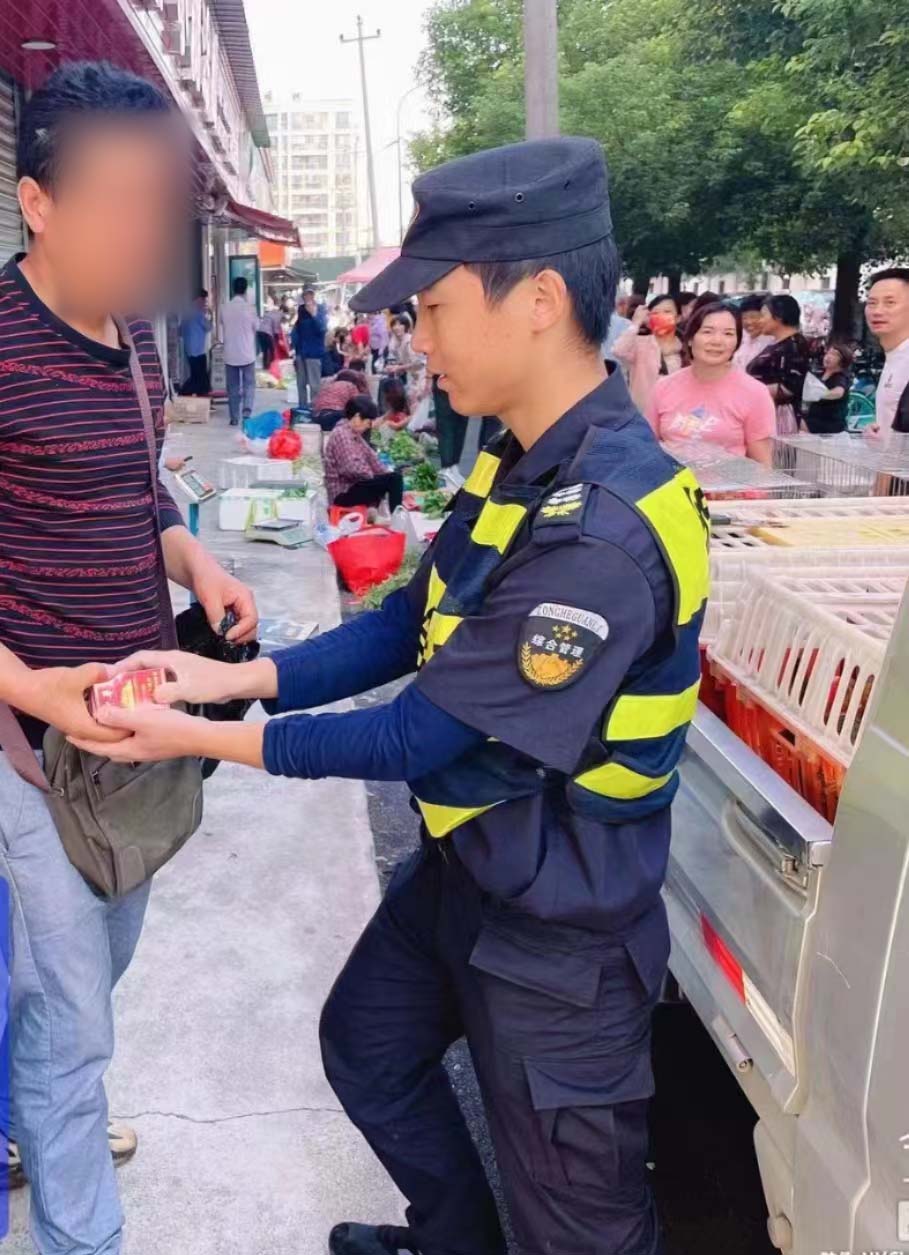 當日7:20,雍正維和陳浩東在五常街道同順街與繁惠路交叉口永福菜場值勤時,一流動攤販要將四包香煙塞到兩名隊員手中,試圖以此讓兩人照顧其攤位。
