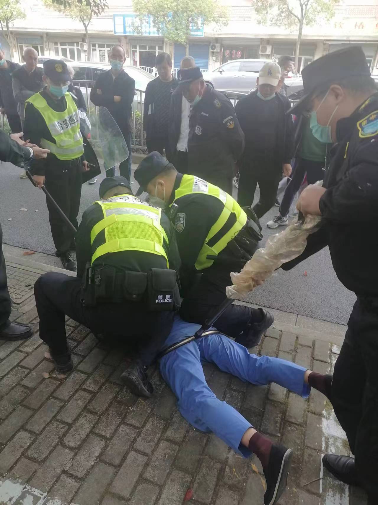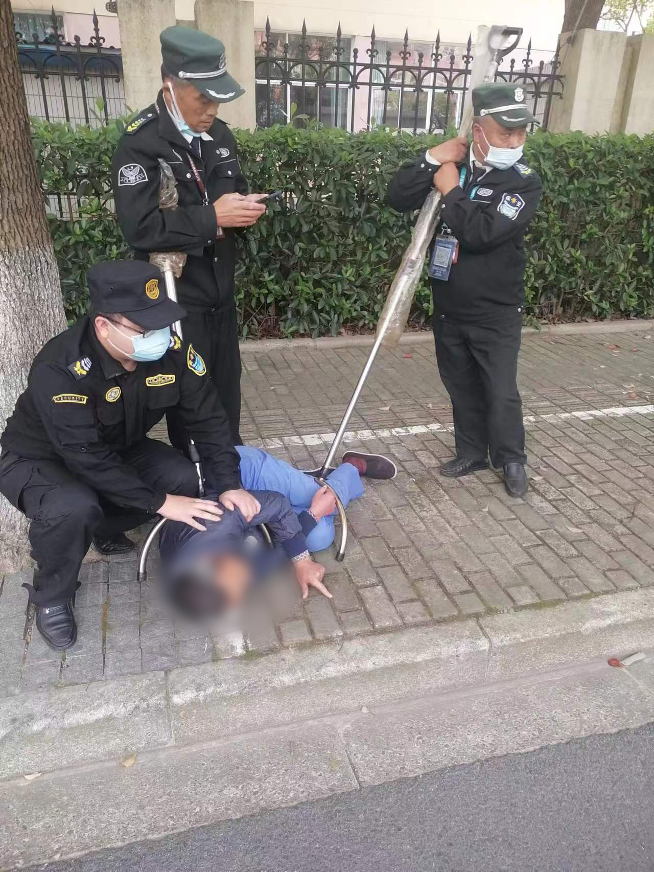 10月14日,宗保公司駐浦東新區(qū)合慶鎮(zhèn)網(wǎng)格項目員工協(xié)助控制持刀男子。
