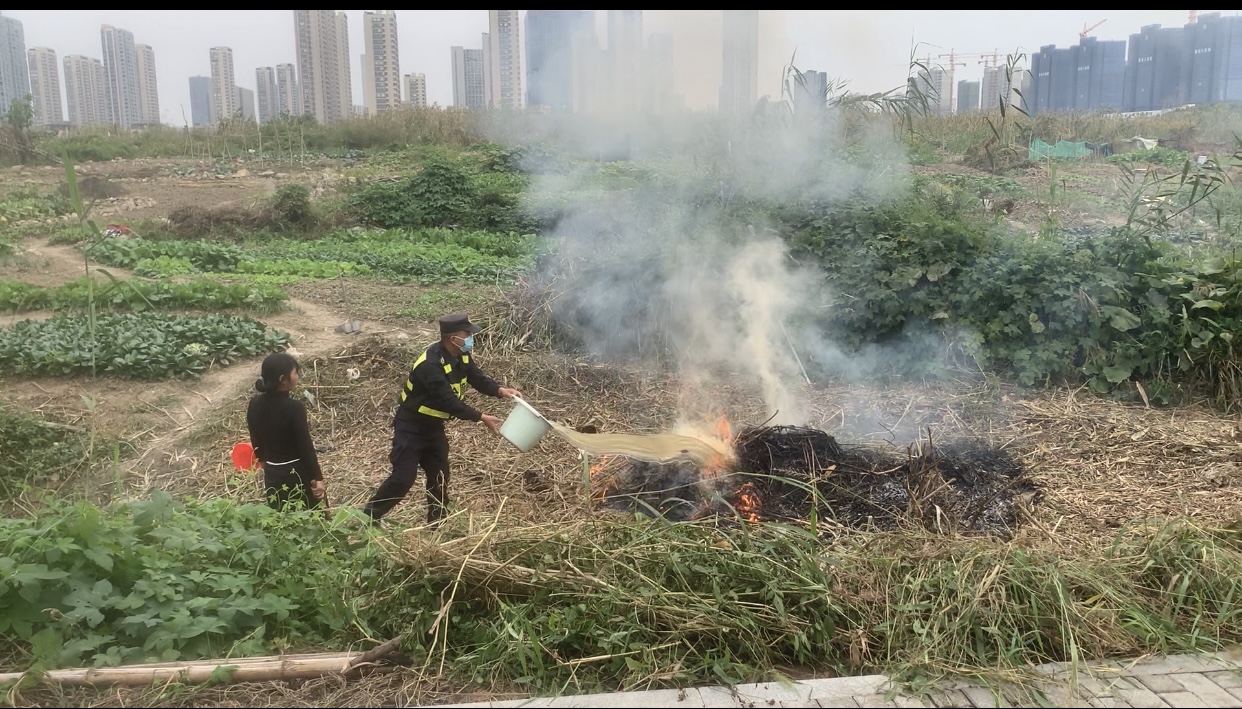 11月1日,浙江民泰公司駐杭州市余杭區(qū)良渚地鐵項(xiàng)目員工勸止焚燒秸稈居民,并主動(dòng)幫助滅火。