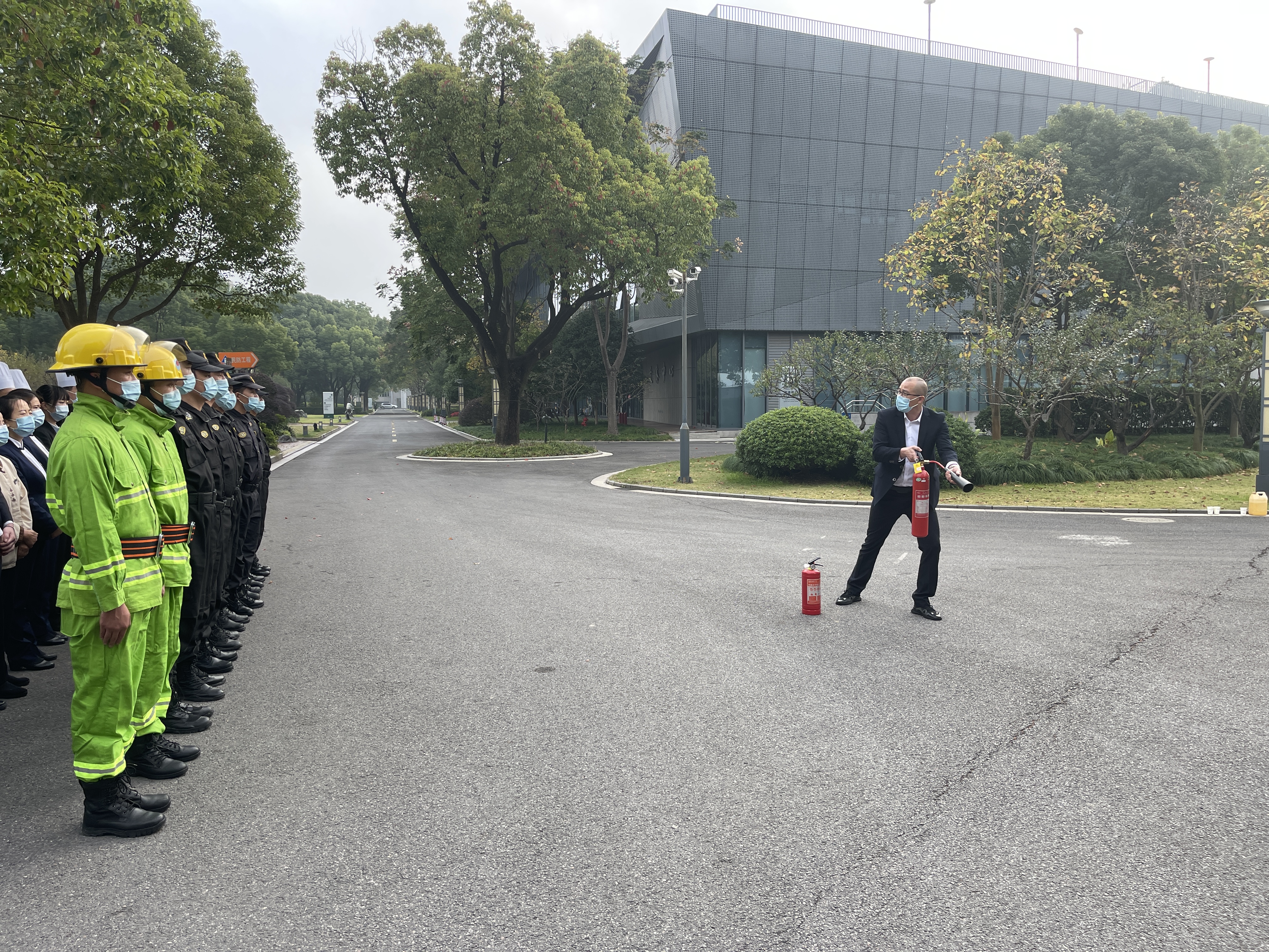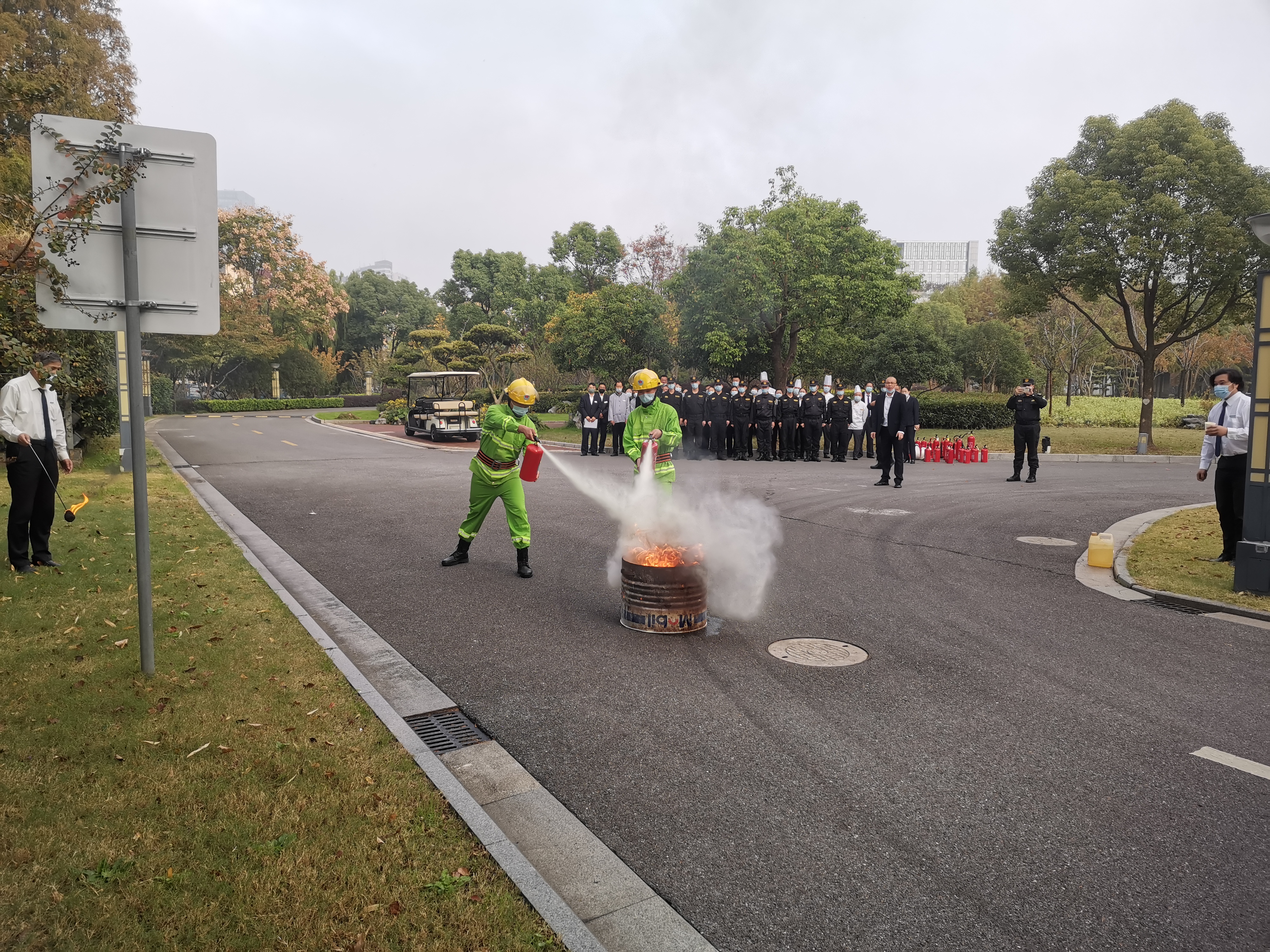 公司項(xiàng)目隊(duì)長(zhǎng)許志剛按照培訓(xùn)教程,詳細(xì)講解了手持式滅火器和消防水帶的使用方法,講授了突發(fā)事件處置和疏散逃生的知識(shí),現(xiàn)場(chǎng)演示了滅火器材的操作使用。隨后,組織進(jìn)行了滅火器實(shí)操演練,火情下人員有序疏散、協(xié)助傷者逃生等實(shí)戰(zhàn)演練。