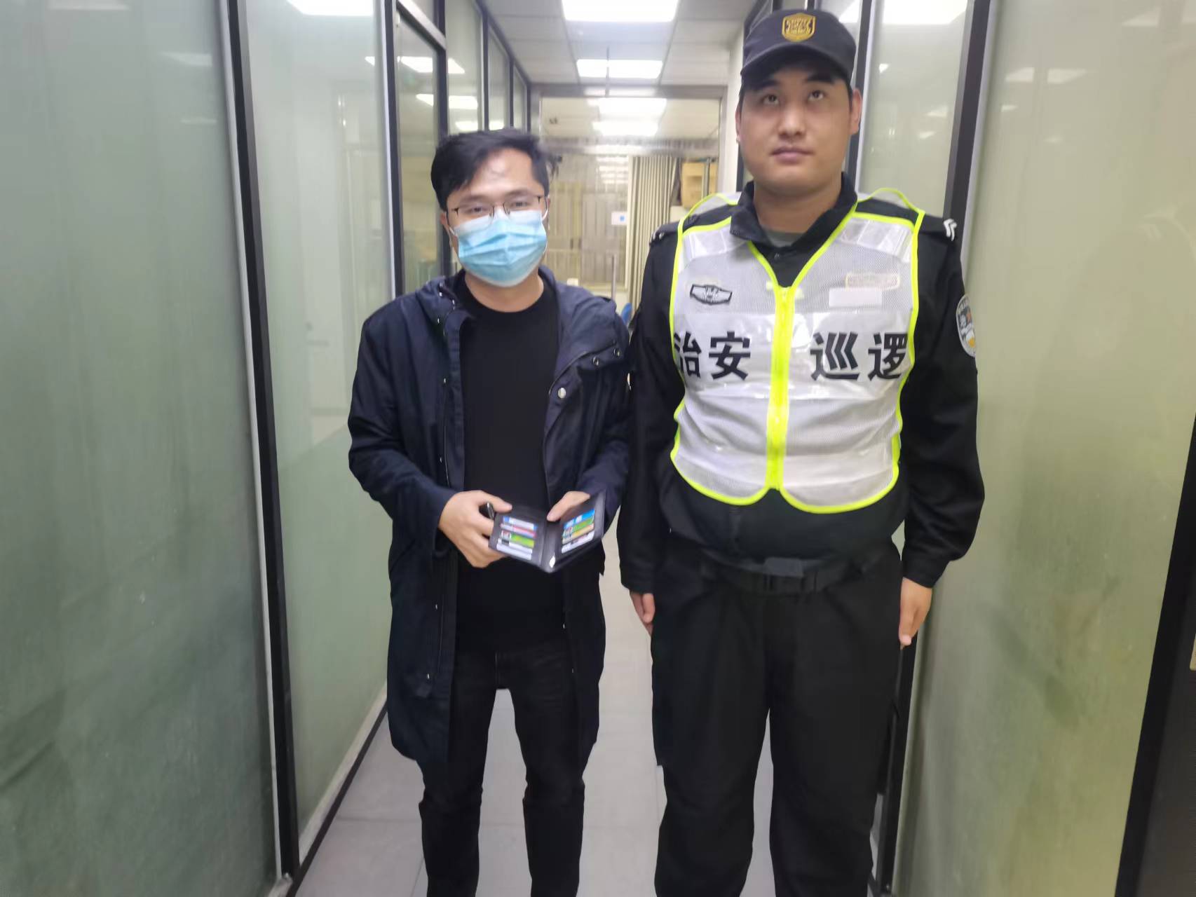 11月16日,宗保公司駐浦東金橋派出所輔助項(xiàng)目員工撿到錢(qián)包交還失主,受到感謝。