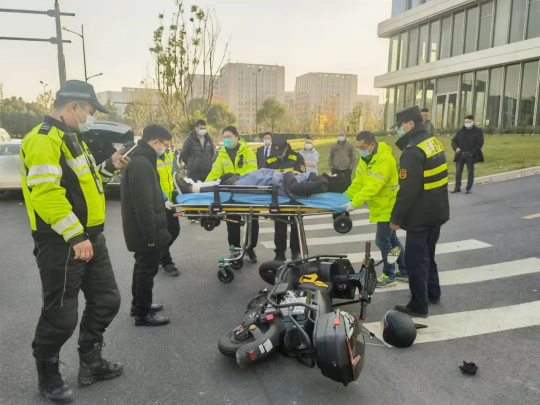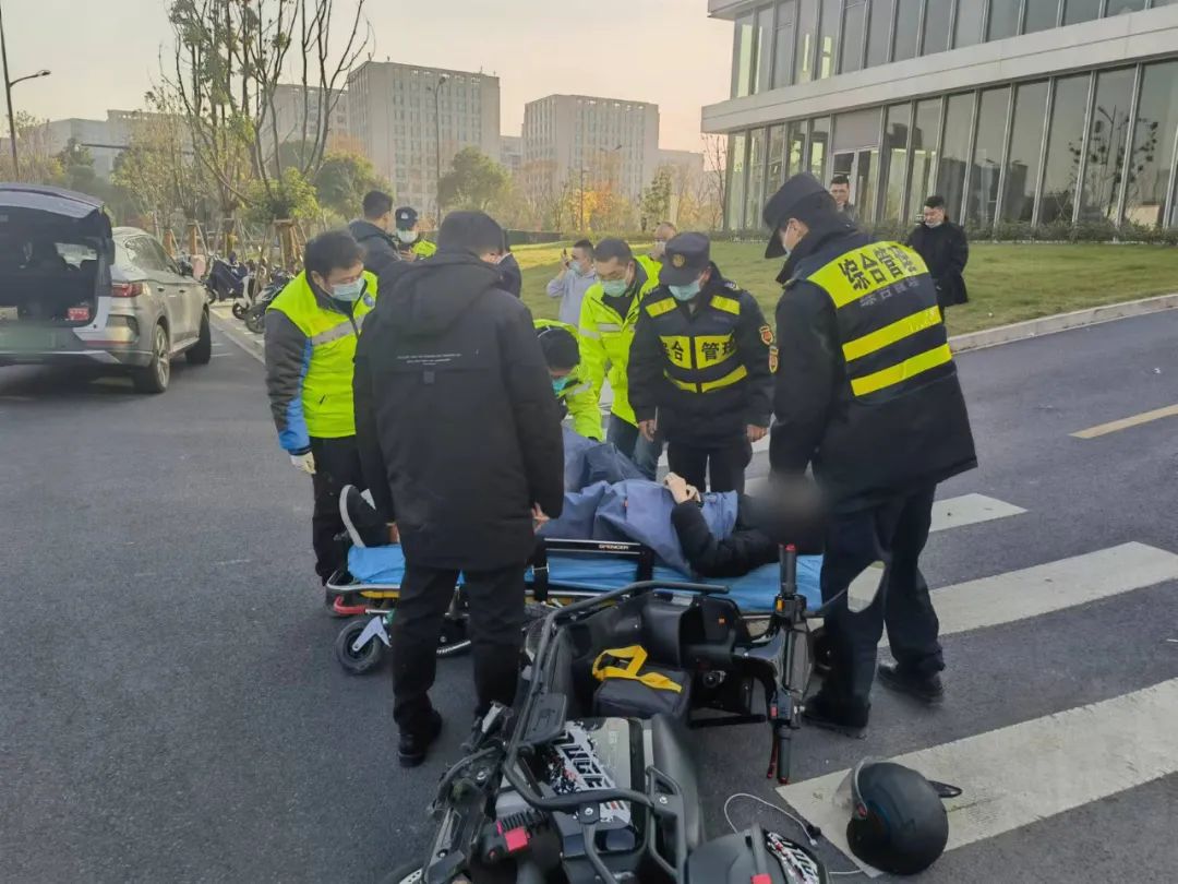 當(dāng)日15:16,公司員工魏文鵬、董懷義和趙啟在五常街道余杭塘路小滕街口巡查時(shí),目睹了一起交通事故——一輛電動(dòng)車(chē)為了躲避一輛右拐的白色轎車(chē)急剎車(chē)摔倒在地,騎電瓶車(chē)男子受傷躺在路上無(wú)法起身。