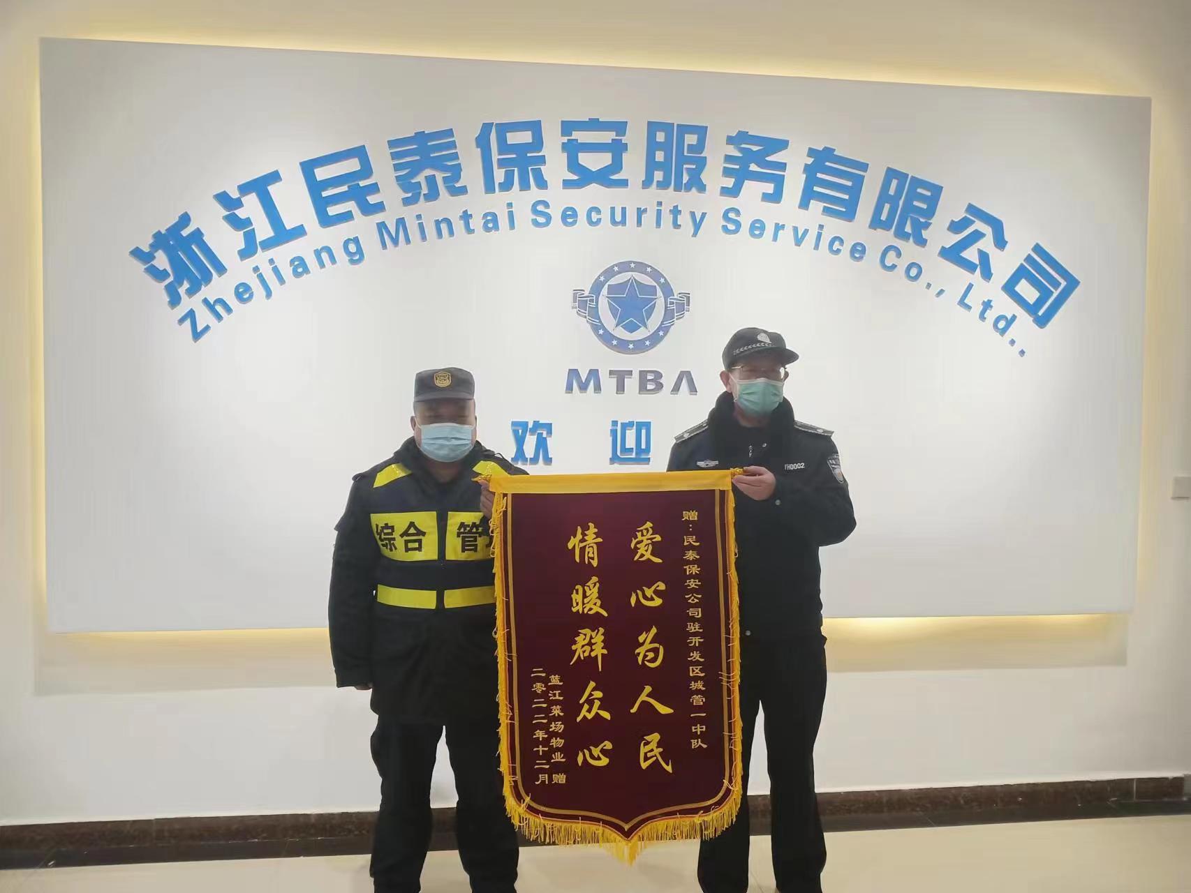 12月30日,浙江民泰公司駐杭州市臨平區(qū)東湖市容項目收到藍江菜場物業(yè)公司送來的一面繡有“愛心為人民 情暖群眾心”的錦旗,對民泰公司提供的優(yōu)質服務給予了充分肯定和贊揚。