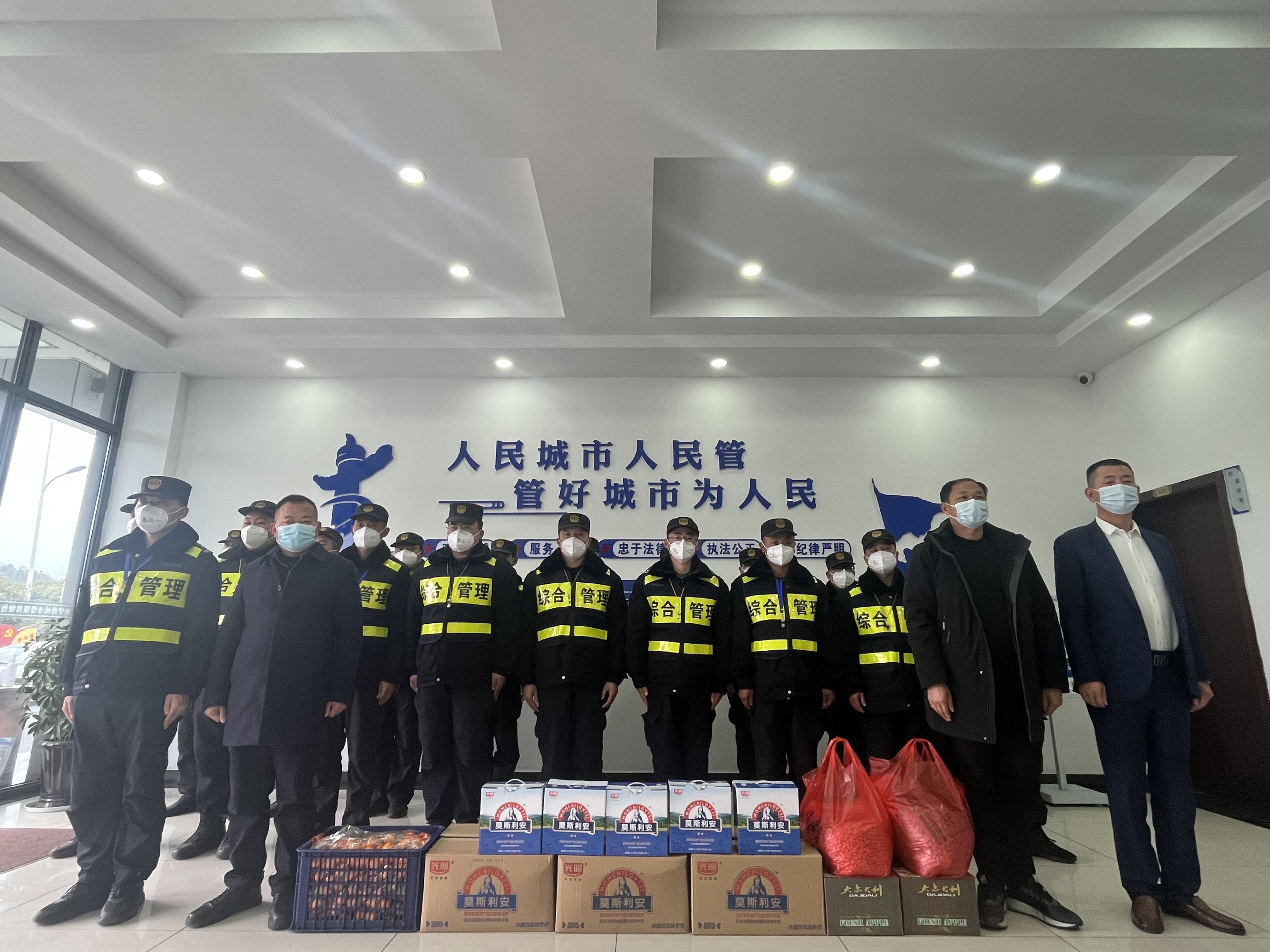 1月19日,安徽黃山市休寧縣城市管理行政執(zhí)法局黨組成員、大隊(duì)長程云彪,法規(guī)股股長鄒文輝一行代表局黨組看望慰問春節(jié)期間堅(jiān)守崗位的宗保員工。