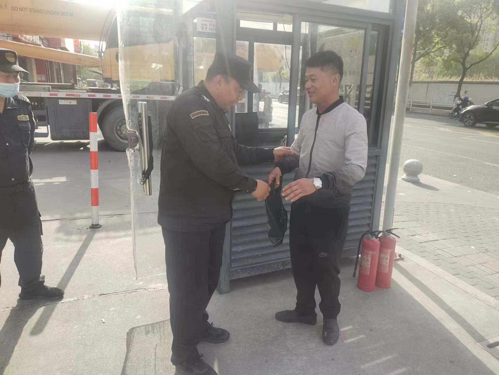 4月13日,宗保公司駐浦東周浦區(qū)域海印·哈鄰里項(xiàng)目員工撿到黑色手提袋交還失主,受到感謝。