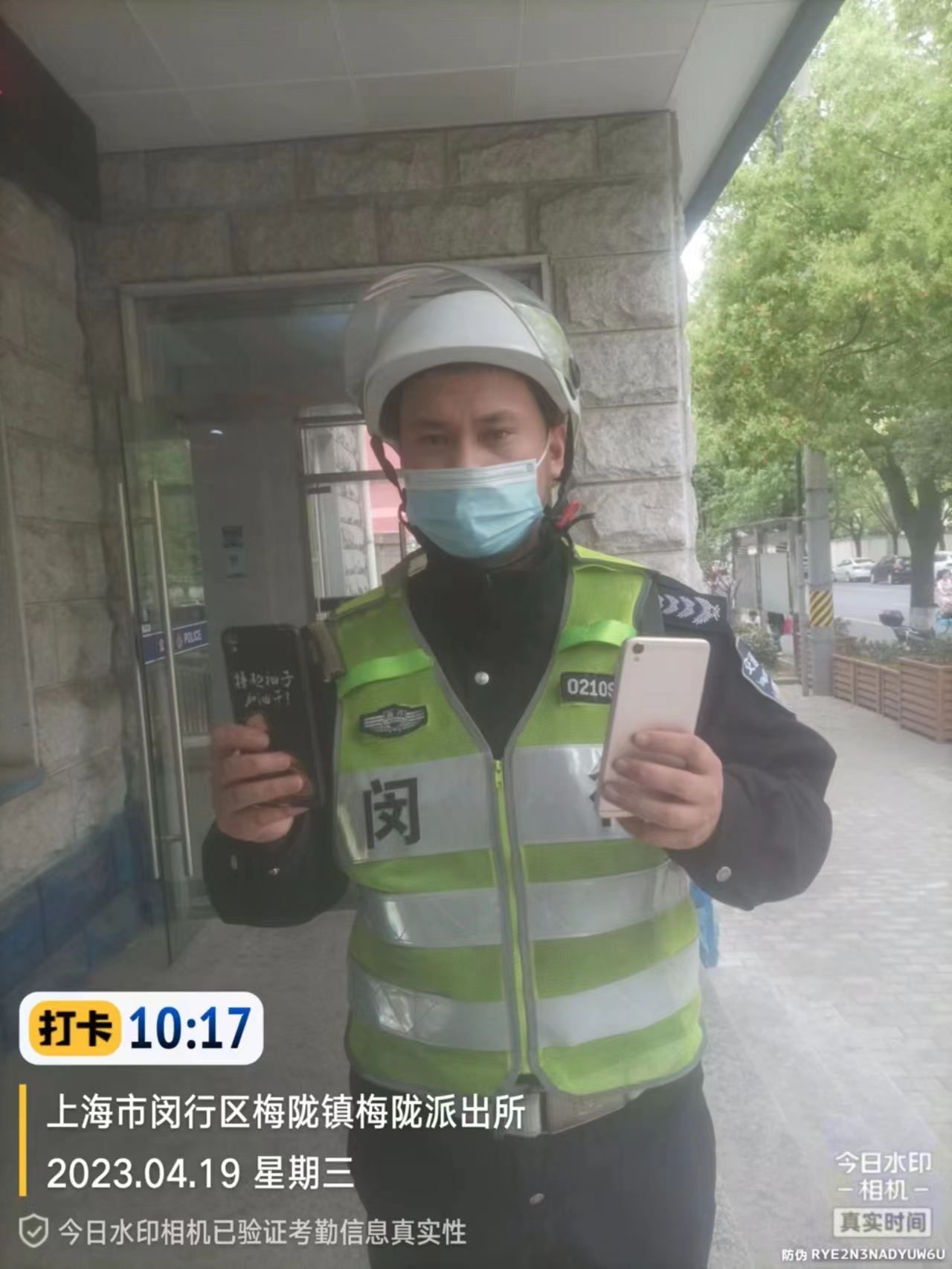 4月19日,宗保公司駐閔行區(qū)交通委項(xiàng)目員工撿到手機(jī)上交民警。