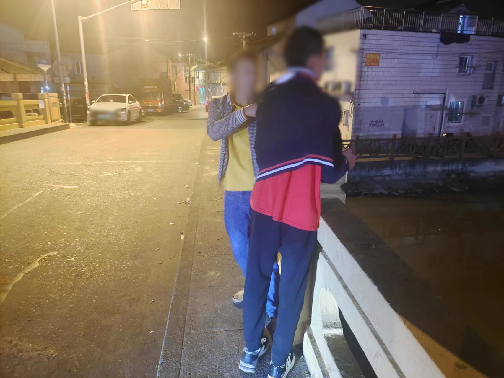 當(dāng)日23:15,公司員工孫魁在三灶路與橫沔江路橋頭巡邏時(shí),聽到有人在橋頭大聲呼叫“快來救救我家小孩,救救我家小孩,他要跳河,他要跳河......”