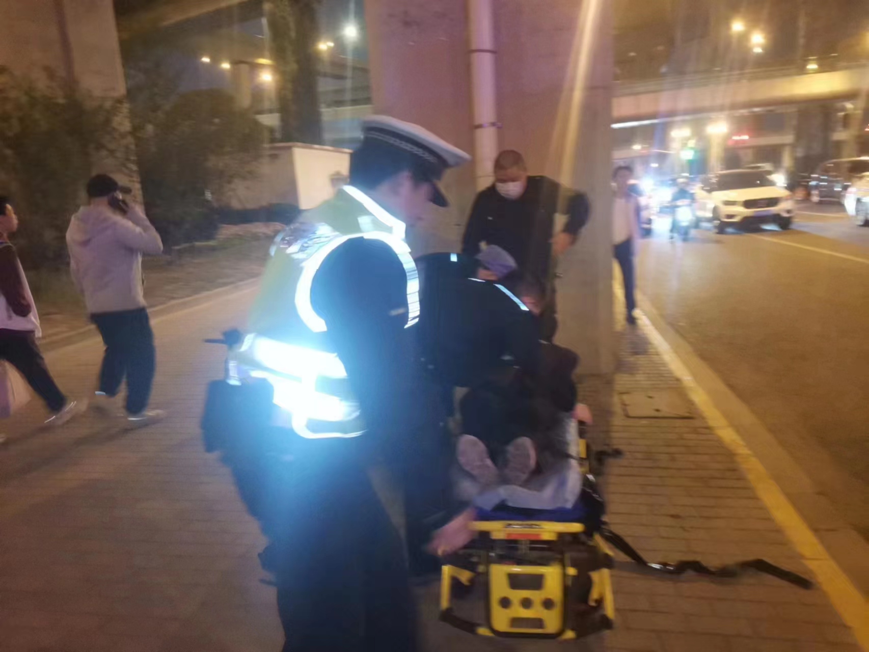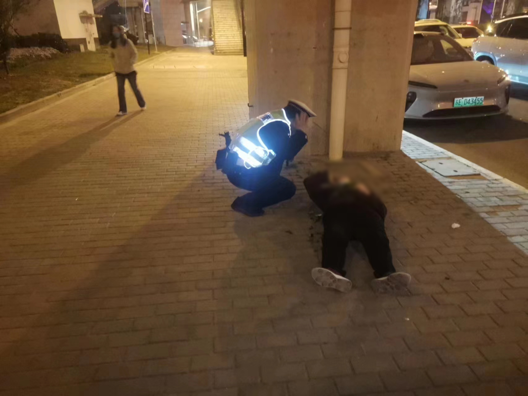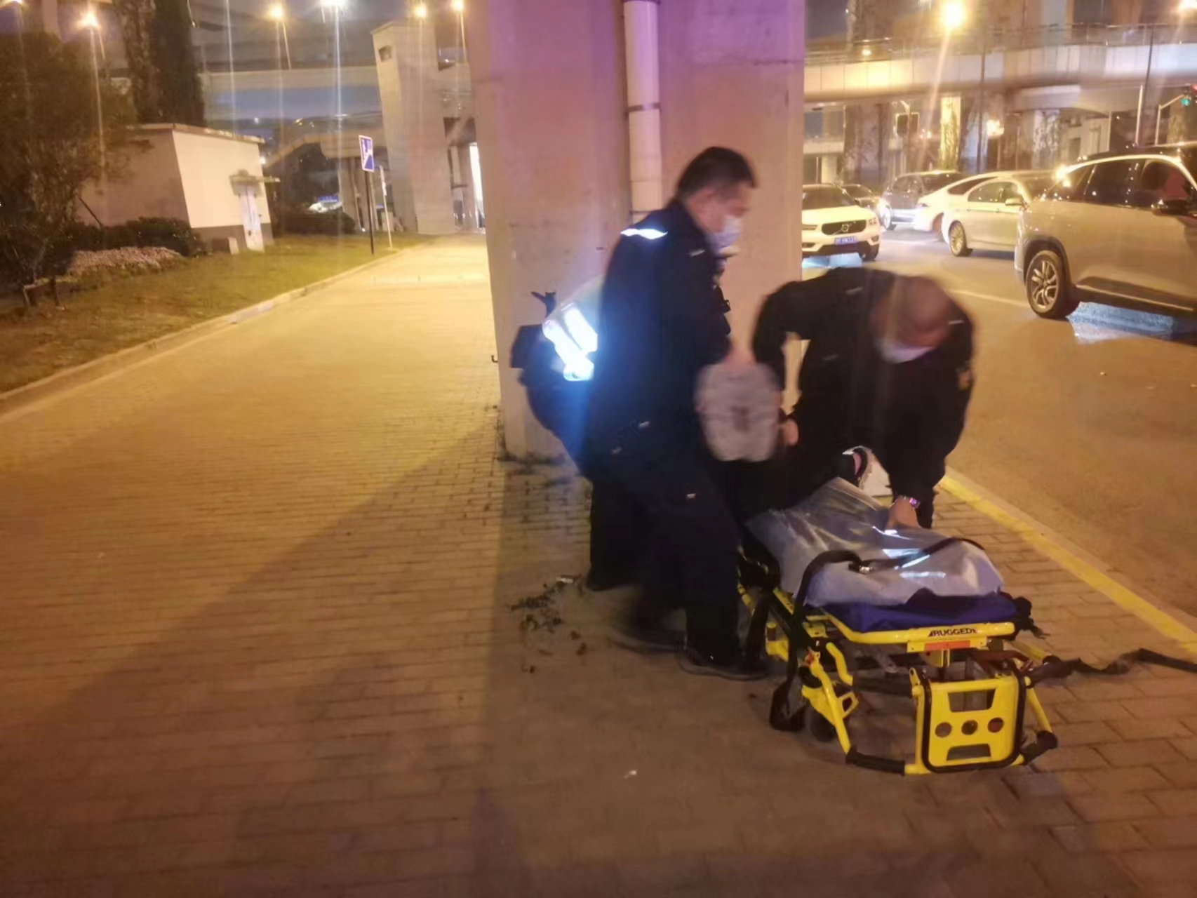 當(dāng)日20:00,公司員工高昌炎在上海閔行外語(yǔ)學(xué)校護(hù)校疏導(dǎo)交通時(shí),發(fā)現(xiàn)一位老人躺在人行道上,便快步跑到老人身邊察看。