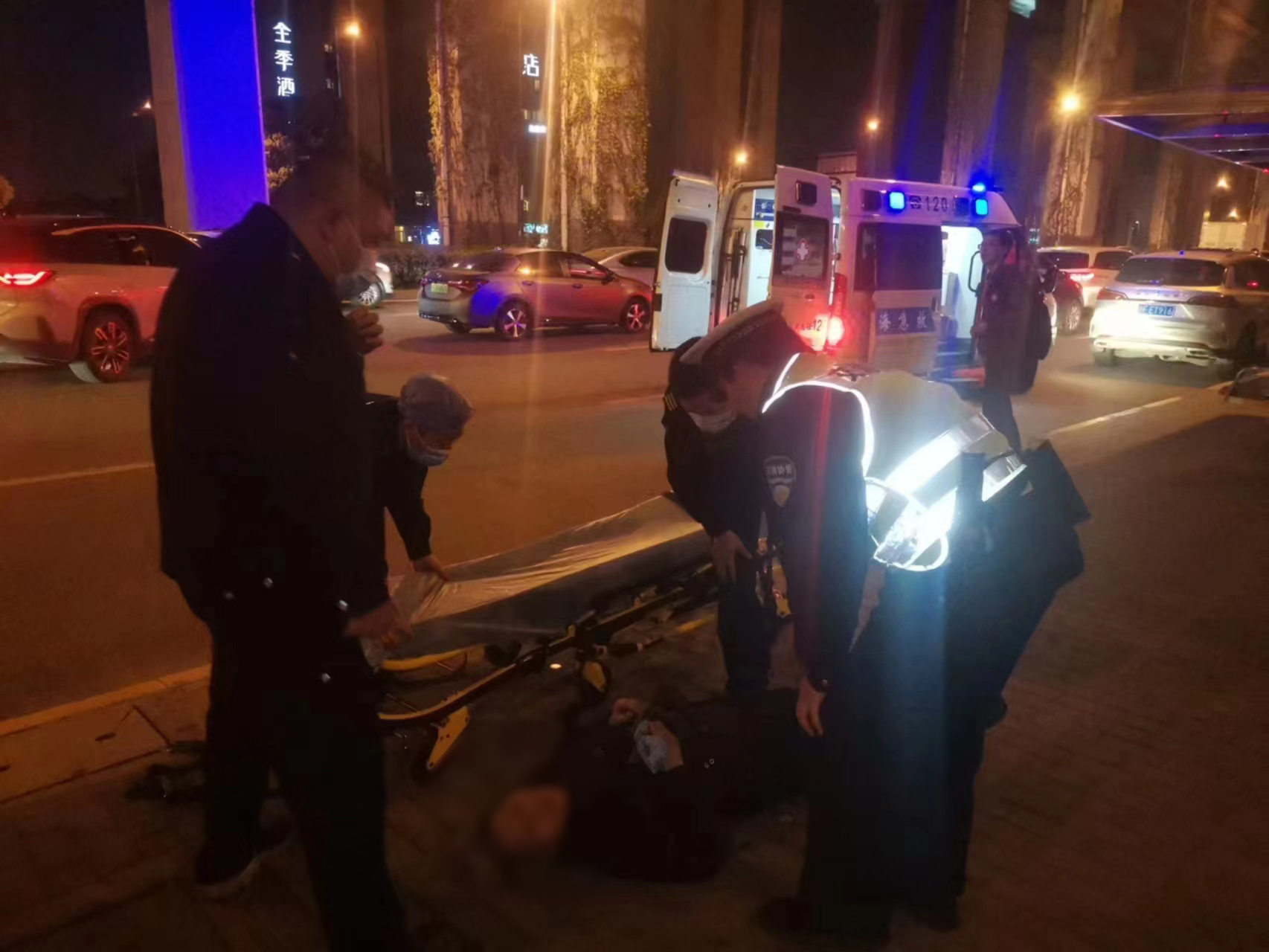 很快,120急救車來到事發(fā)現(xiàn)場(chǎng),高昌炎幫助醫(yī)護(hù)人員將老人抬上救護(hù)車送往醫(yī)院救治。