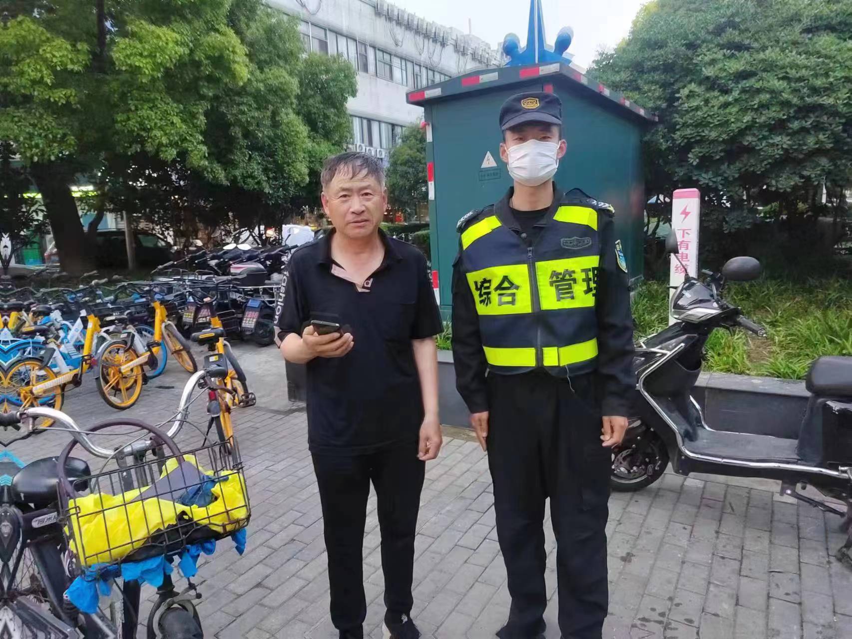 當(dāng)日10:20,公司員工周雷在紅豐菜市場(chǎng)西門巡邏時(shí),撿到一部華為手機(jī),詢問(wèn)周圍人員無(wú)人認(rèn)領(lǐng)后,便將手機(jī)交給了菜市場(chǎng)辦公室,并把情況報(bào)告了當(dāng)班組長(zhǎng)。