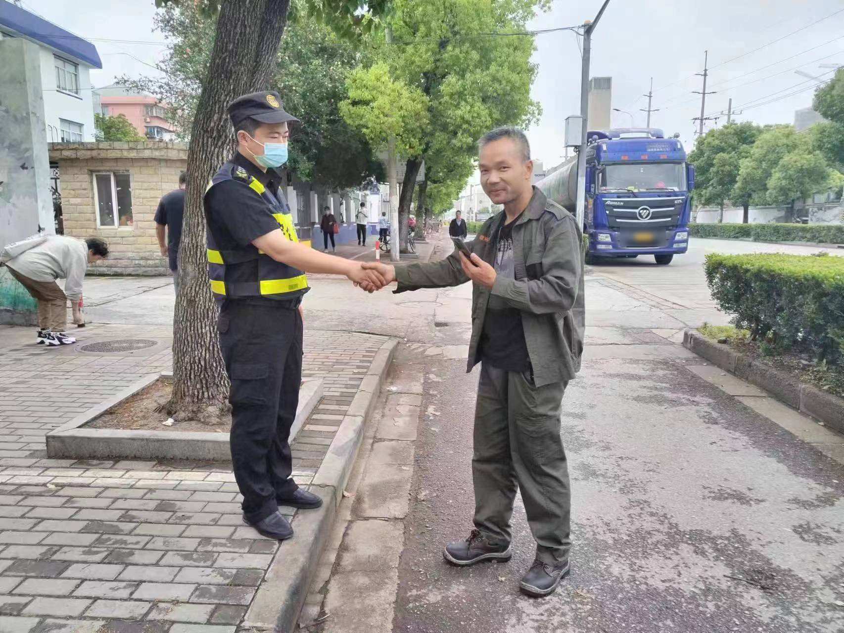 當(dāng)日6:20,公司員工陳鎮(zhèn)在昌運(yùn)里儲(chǔ)運(yùn)路值勤時(shí),撿到一部黑色華為P40手機(jī),詢問(wèn)周圍人員無(wú)人認(rèn)領(lǐng)后,便將情況報(bào)告了項(xiàng)目負(fù)責(zé)人,并按指示邊值勤邊留意尋找物品的人。