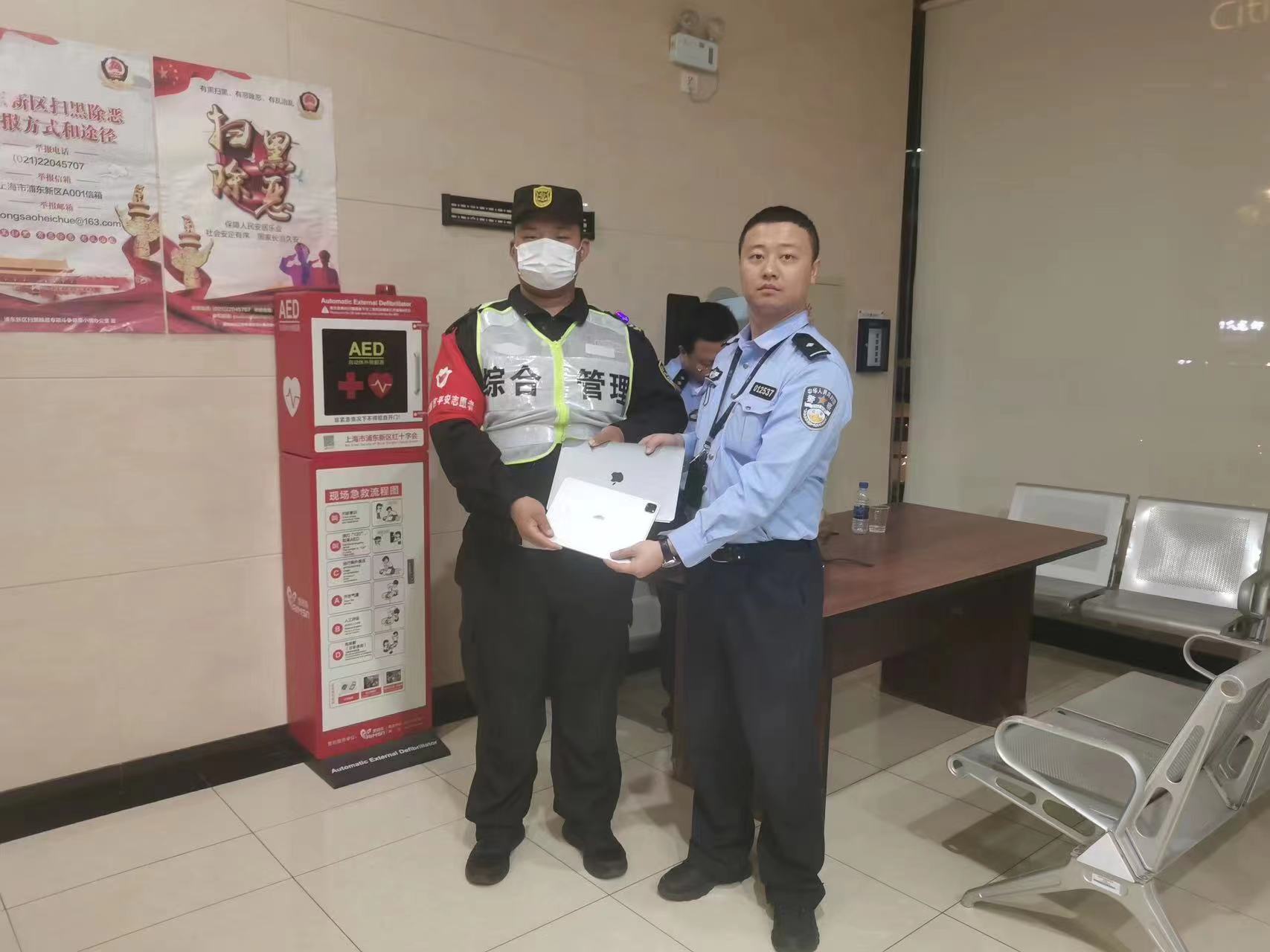 5月18日,宗保公司駐浦東新區(qū)陸家嘴綜合管理項(xiàng)目員工撿到平板電腦上交民警。