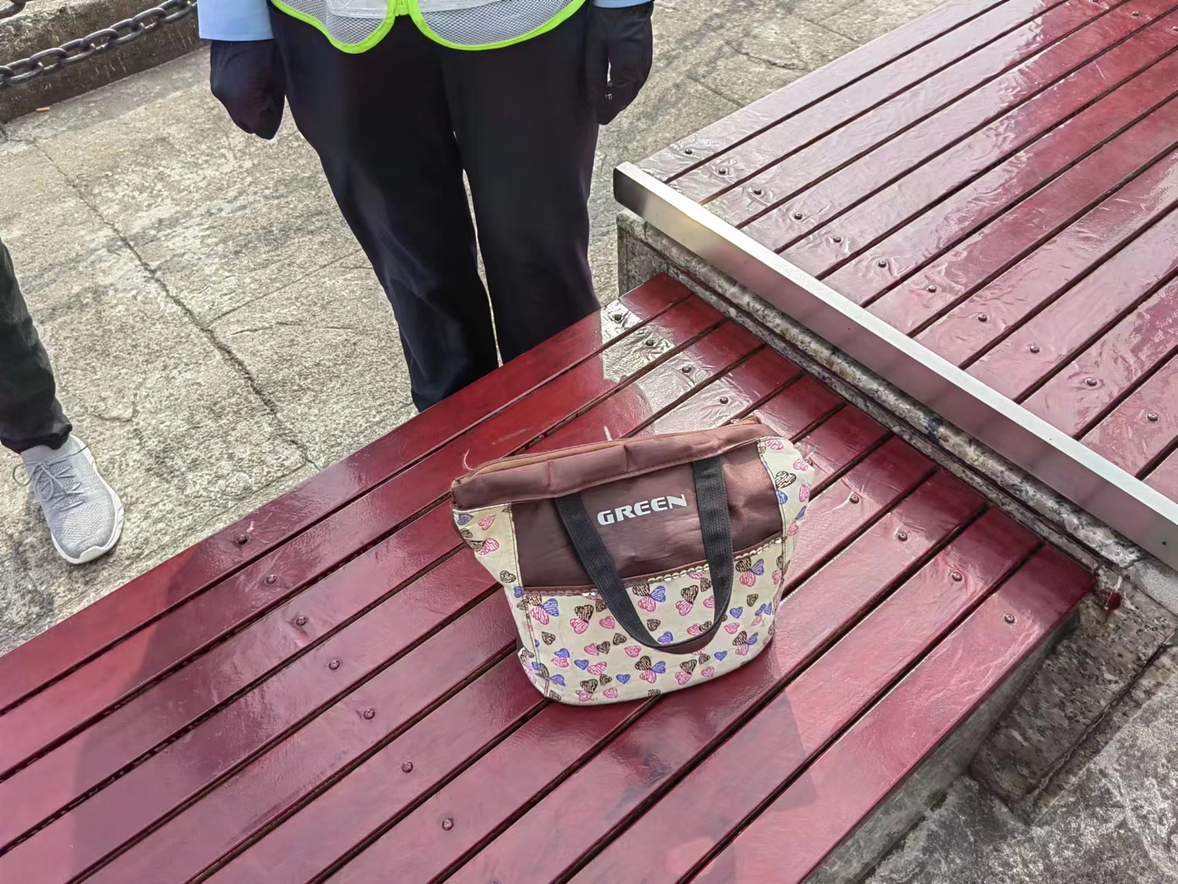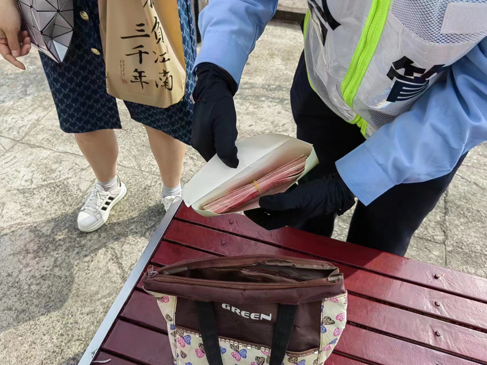 當(dāng)日15:13,公司員工許中美巡邏至浦東新區(qū)南濱江親水平臺(tái)時(shí),發(fā)現(xiàn)一個(gè)休息座椅上有一個(gè)帆布包,而周邊沒(méi)有人。許中美便立即上前查看,包內(nèi)裝有10000元現(xiàn)金和若干物品。