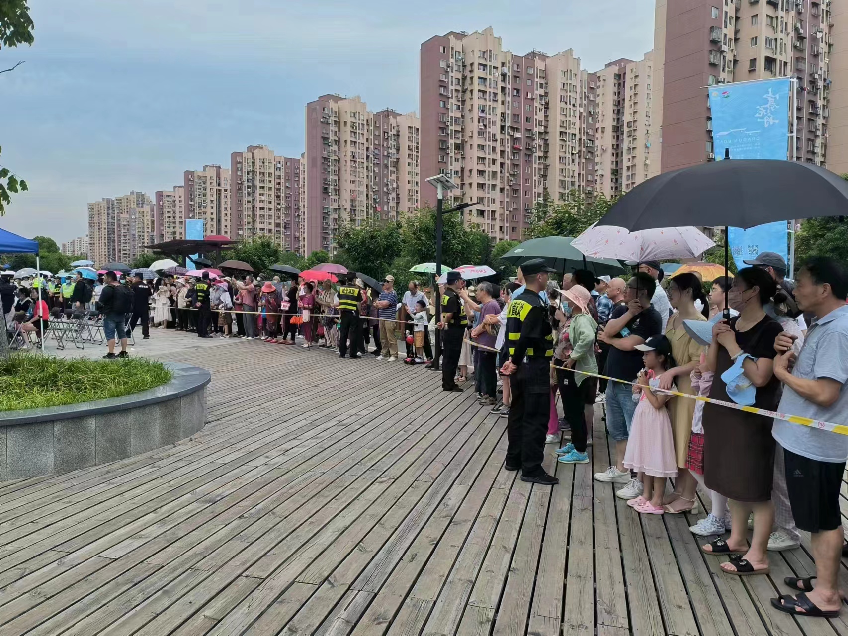 參加龍舟賽安保的員工們按照公司安排,提前到崗到位,巡查河道沿線,疏導(dǎo)控制人流,時(shí)時(shí)提醒觀眾文明觀賽,勸阻制止推擠或翻越護(hù)欄行為,加強(qiáng)河道重點(diǎn)段點(diǎn)巡防,避免觀賽群眾靠近水邊,嚴(yán)防事故發(fā)生。