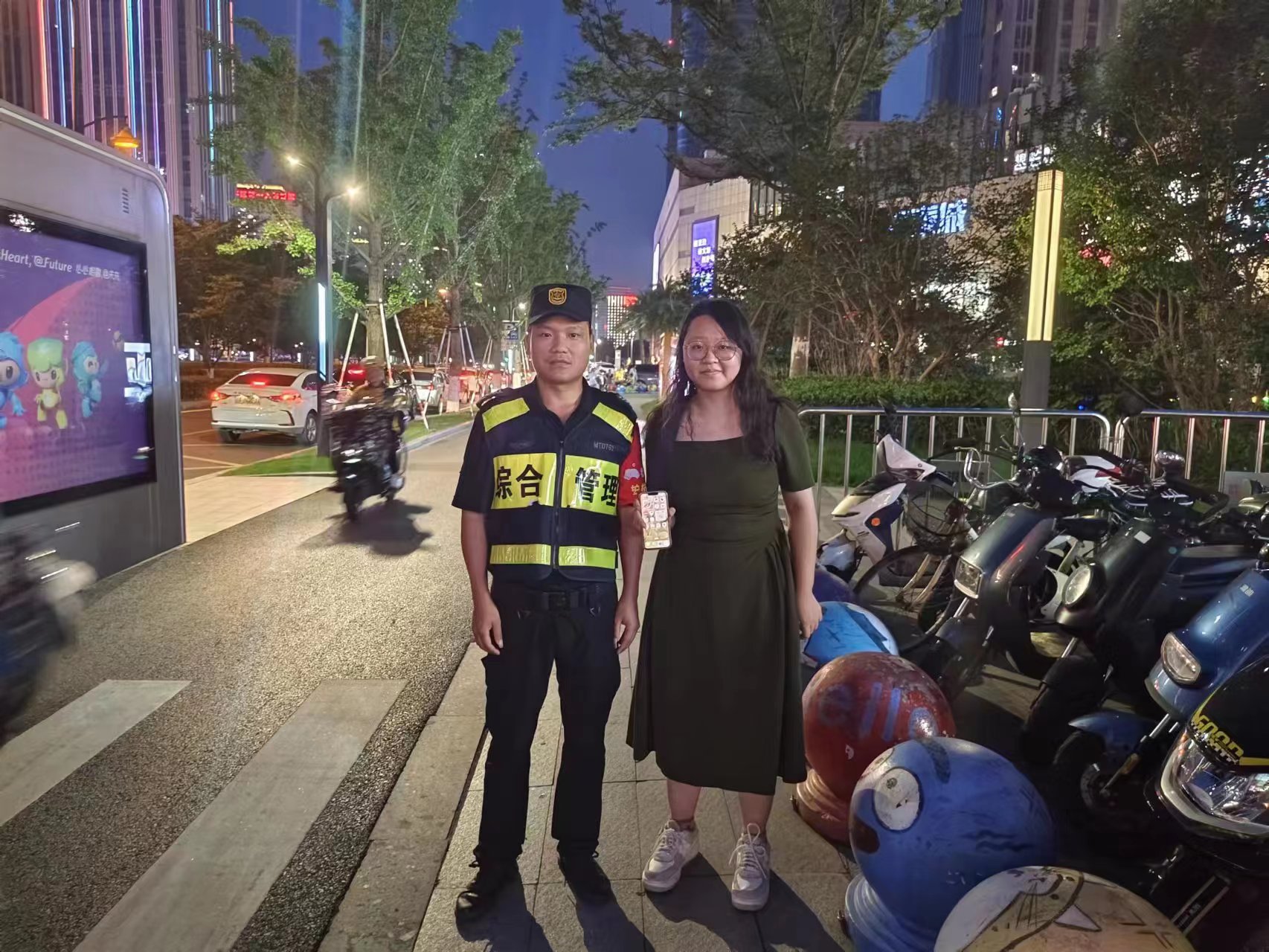 7月9日19:05,浙江民泰公司駐杭州市臨平區(qū)南苑市容項目員工楊飛在臨平地鐵站D口值勤時,撿到一部蘋果14手機,報告班組長后便在原地等待。約過了30多分鐘,一女子前來現(xiàn)場,來來回回察看,似乎在尋找什么東西。楊飛見狀主動上前,詢問并確認其是失主后,就把手機交還給了女子。女子拿著失而復得的手機,十分高興,再三向民泰員工道謝。