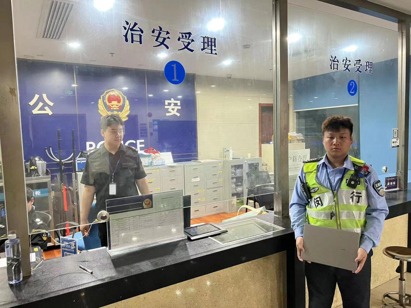 7月11日18:35,宗保公司駐閔行區(qū)虹橋交管輔助項目員工雷雨林值勤時,撿到一部小米筆記本電腦,隨即報告了項目負責人,并按指示在原地等待。大約過了1個小時,仍未見失主前來認領(lǐng),雷雨林便將筆記本電腦上交到虹橋派出所,由民警幫尋失主。
