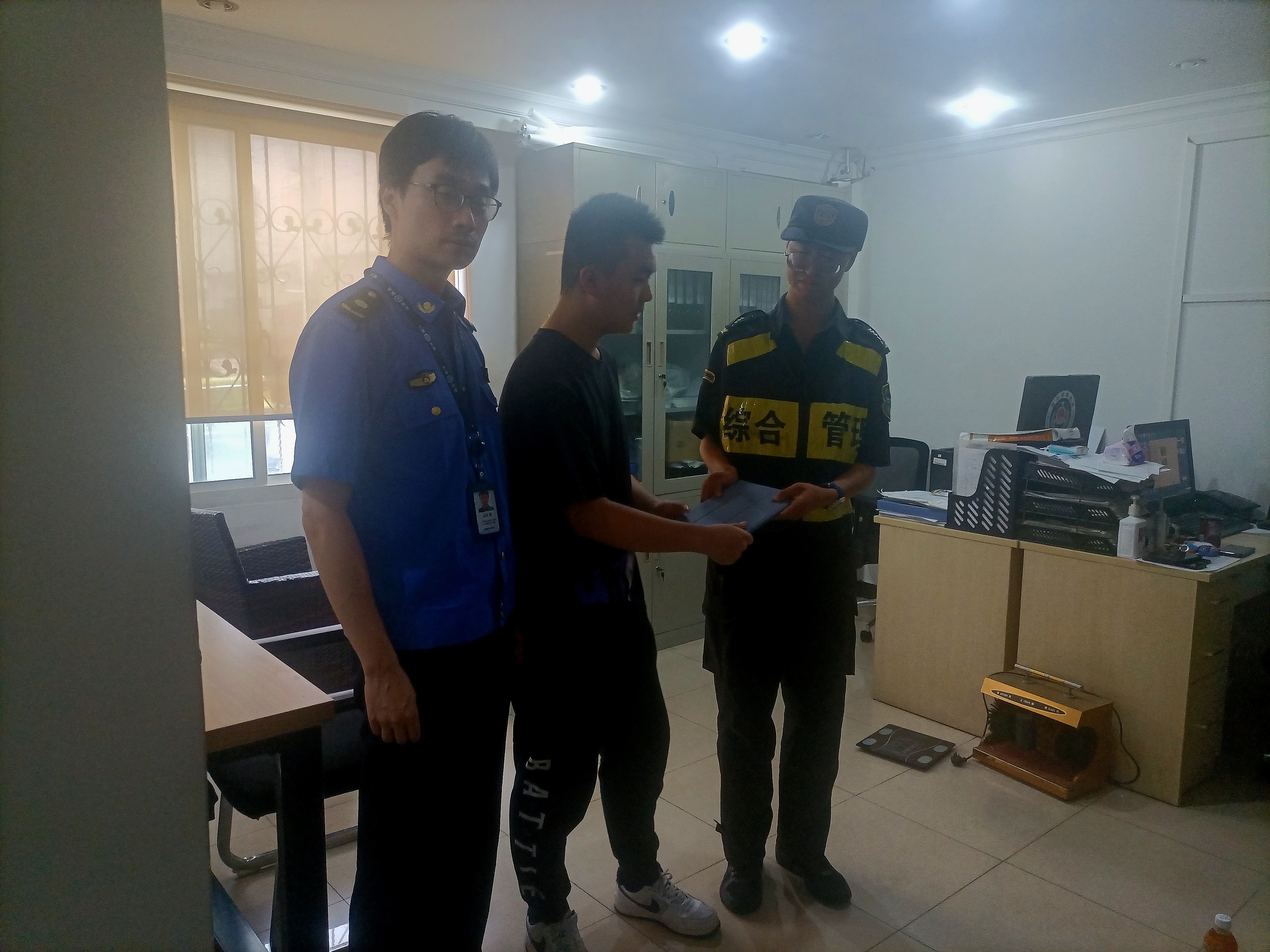 7月17日6:45 ,宗保公司駐浦東新區(qū)陸家嘴社區(qū)市容項目員工王建軍在招遠路小石橋路路口整理亂停放非機動車時,在一輛共享單車的車筐里發(fā)現(xiàn)一臺華為平板電腦。考慮到失主丟失貴重物品,可能會返回尋找,王建軍便在原地等待。大約過了15分鐘,仍不見失主前來認領(lǐng),王建軍便將平板電腦上交到城管中隊嶗山工作站,受到了工作站領(lǐng)導的肯定。當日13:00左右,聞訊前來認領(lǐng)電腦的失主,對宗保員工拾金不昧的行為再三表示感謝.