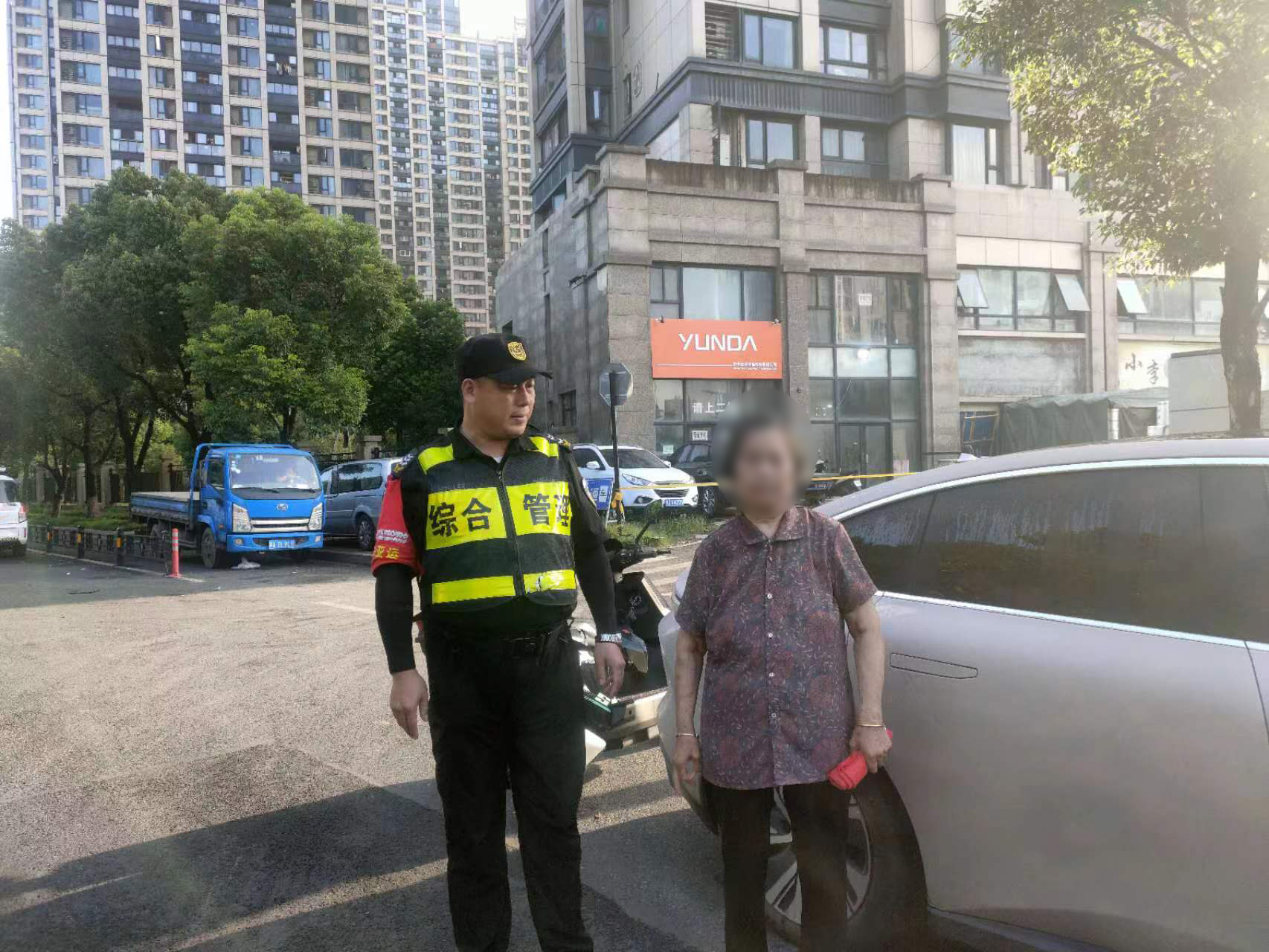 7月18日,浙江民泰公司駐杭州市余杭區(qū)良渚物流項(xiàng)目員工幫助迷路老人回家。