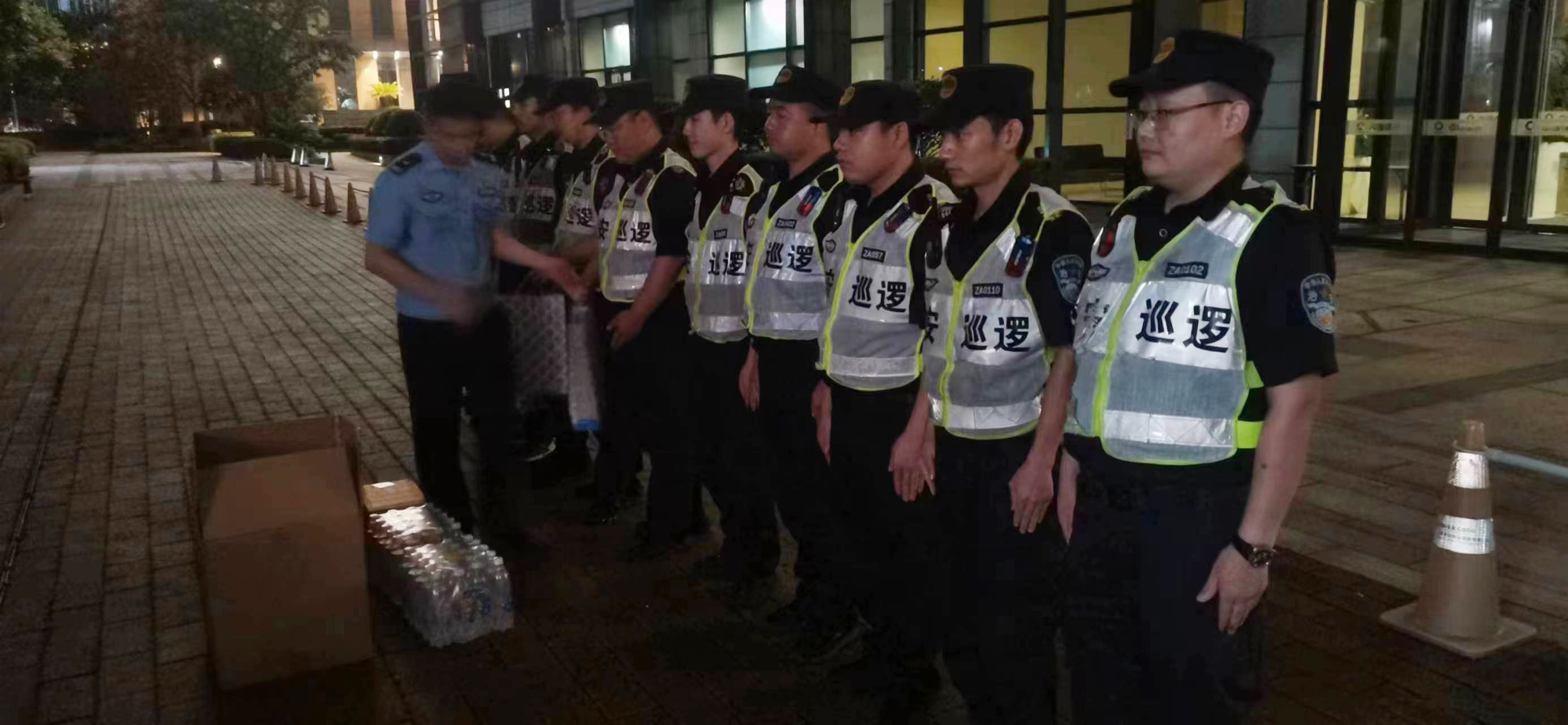 8月1日,浦東新區(qū)公安分局世博園區(qū)公安處一大隊(duì)大隊(duì)長(zhǎng)沈波一行看望慰問(wèn)高溫下奮戰(zhàn)在一線的宗保公司駐世博園區(qū)項(xiàng)目員工。