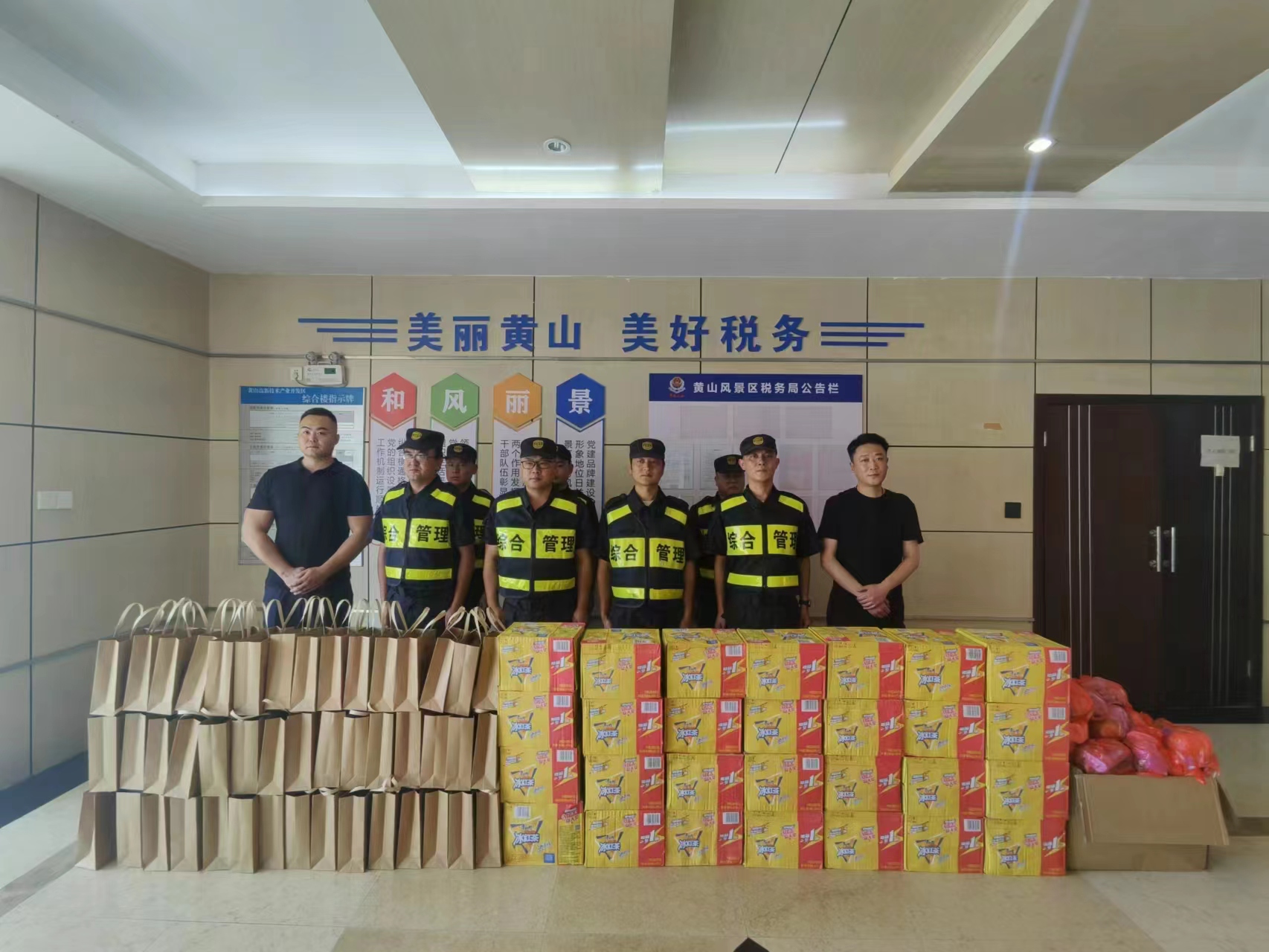 8月15日,安徽省黃山市高新區(qū)管委會(huì)文明辦主任許振東一行看望慰問(wèn)宗保公司駐高新區(qū)市容項(xiàng)目員工,為員工們送上飲料等防暑降溫用品,肯定大家在配合高新區(qū)管委會(huì)開(kāi)展文明創(chuàng)建和控違工作中所做的工作,感謝大家為高新區(qū)城市建設(shè)發(fā)展所付出的辛苦努力。