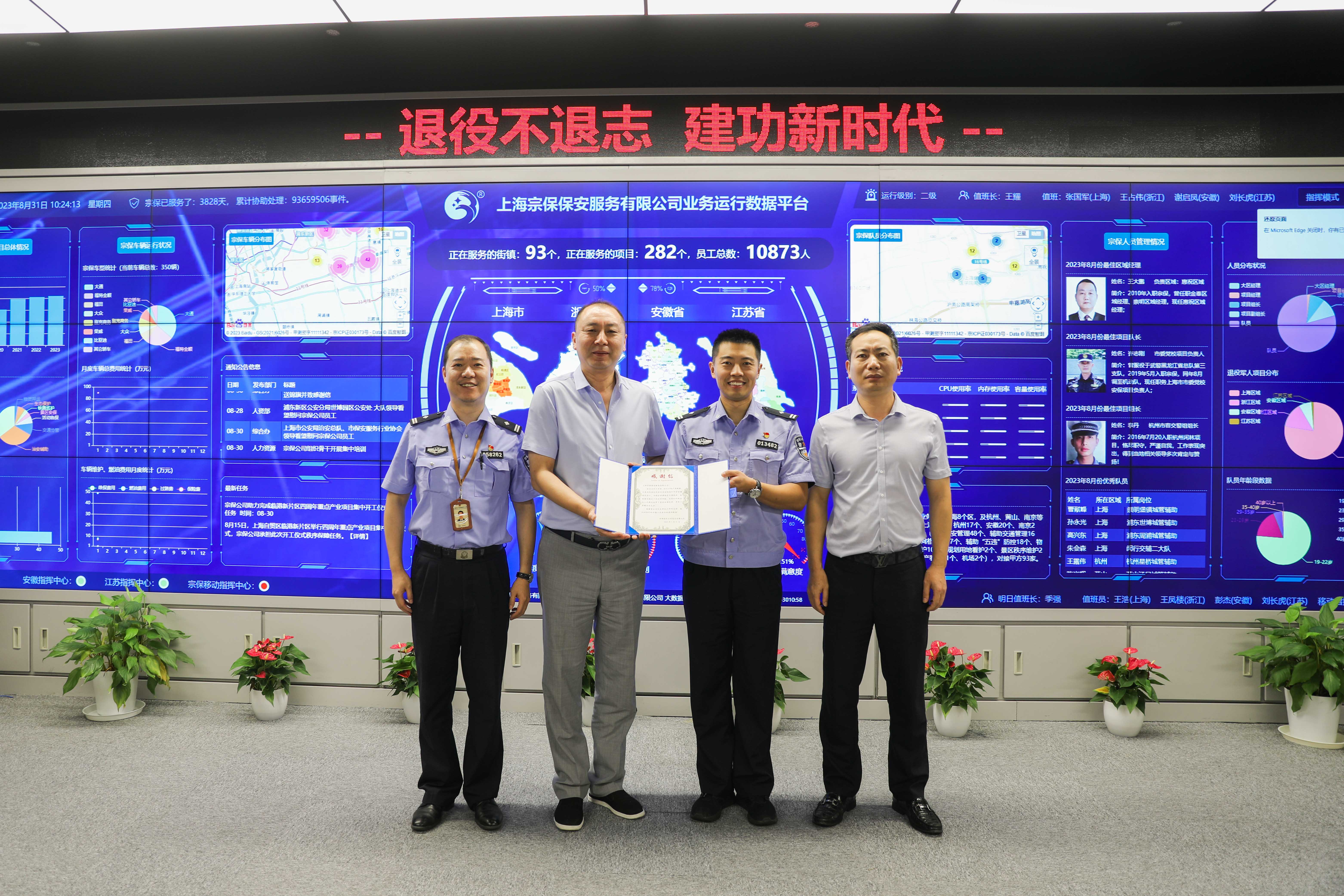 8月31日,浦東新區(qū)公安分局世博園區(qū)公安處交巡警大隊(duì)將一面繡有“守一方熱土 保一方平安”的錦旗和一封感謝信送到宗保公司董事長王耀的手中,感謝公司對(duì)交巡警大隊(duì)工作的大力支持。