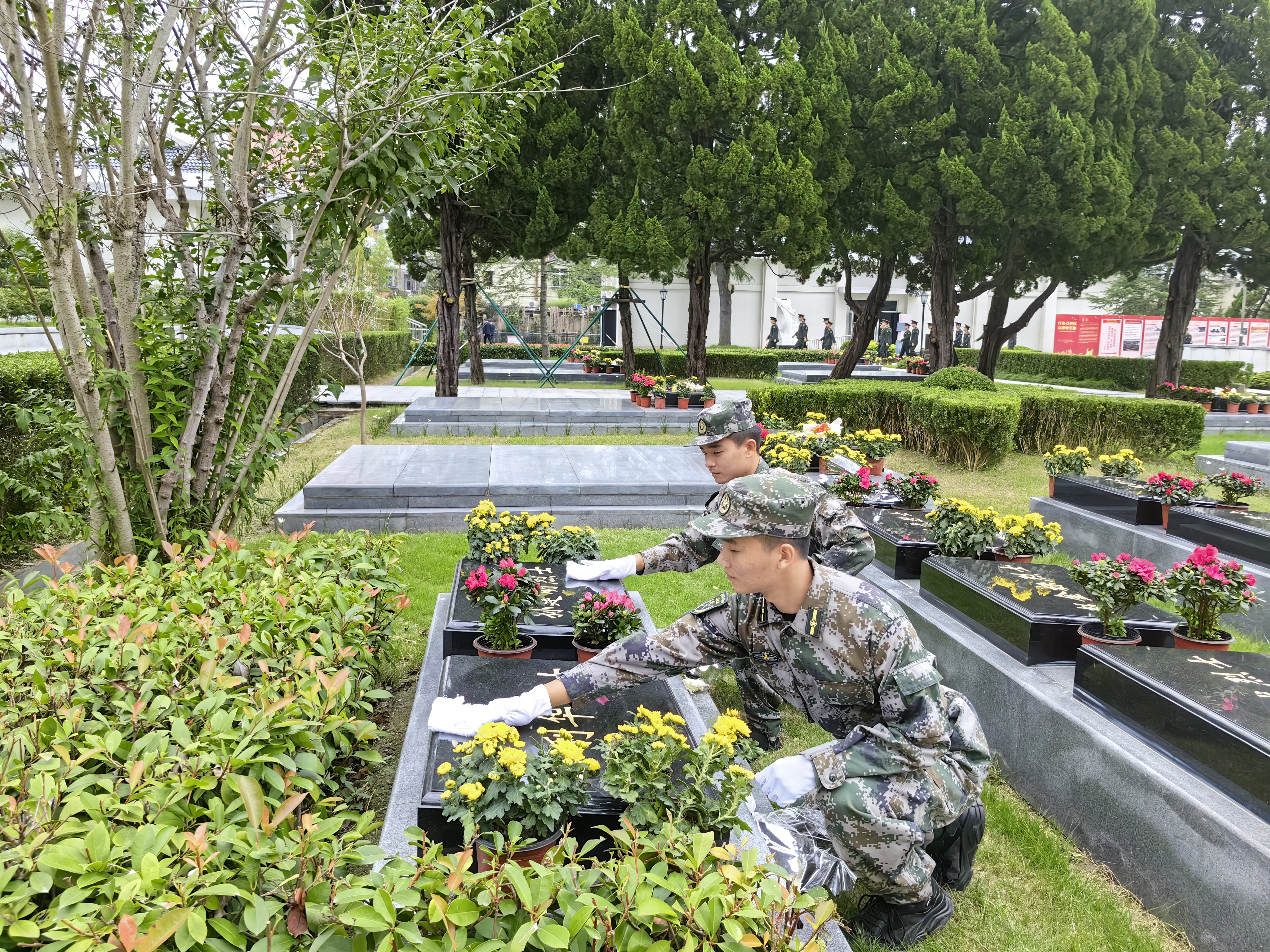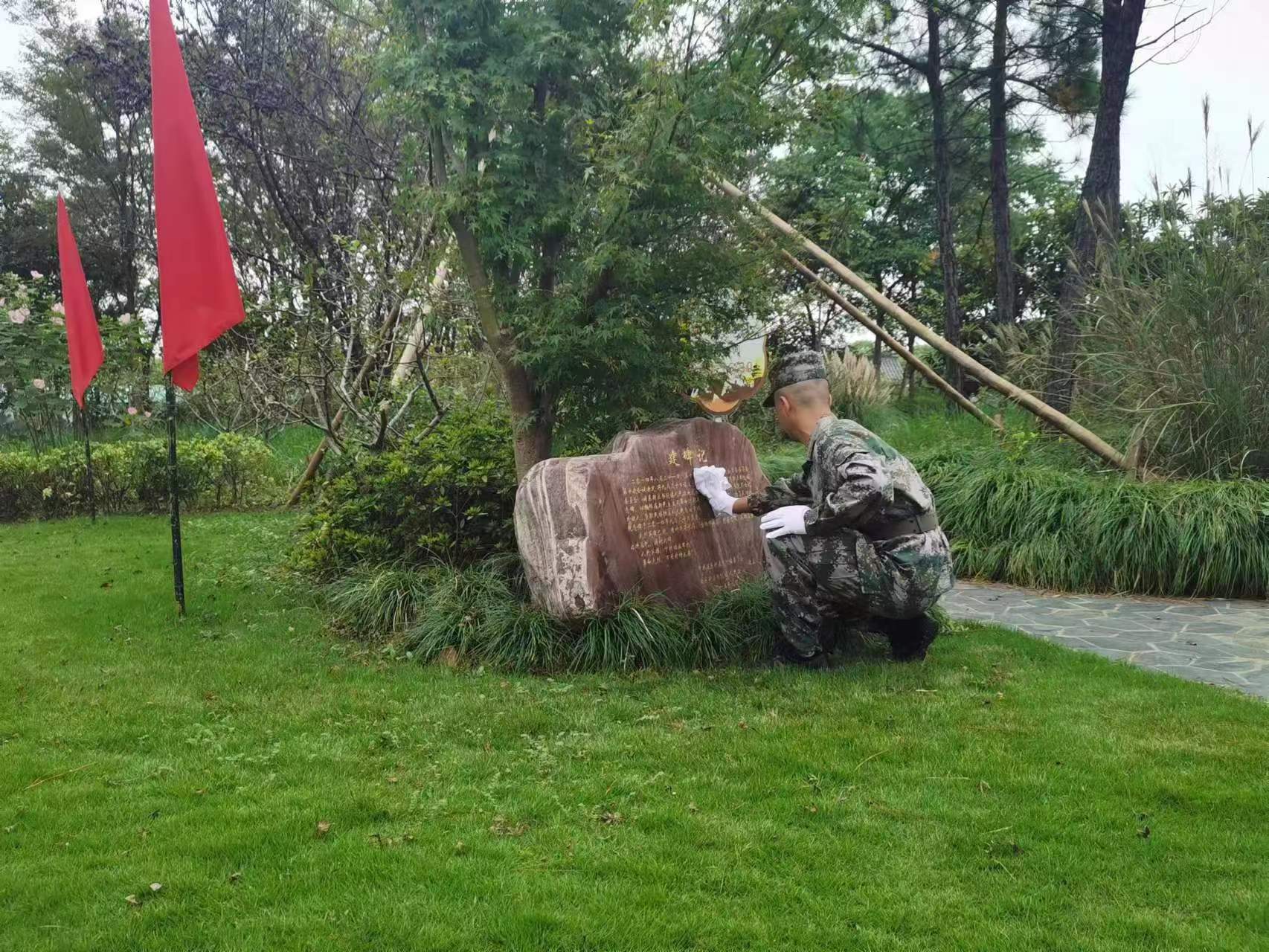接著,浦東區(qū)隊志愿者來到每位革命烈士墓碑前,擦拭烈士墓碑,整理旁邊便道,清掃草葉雜物,以實際行動緬懷革命先烈。