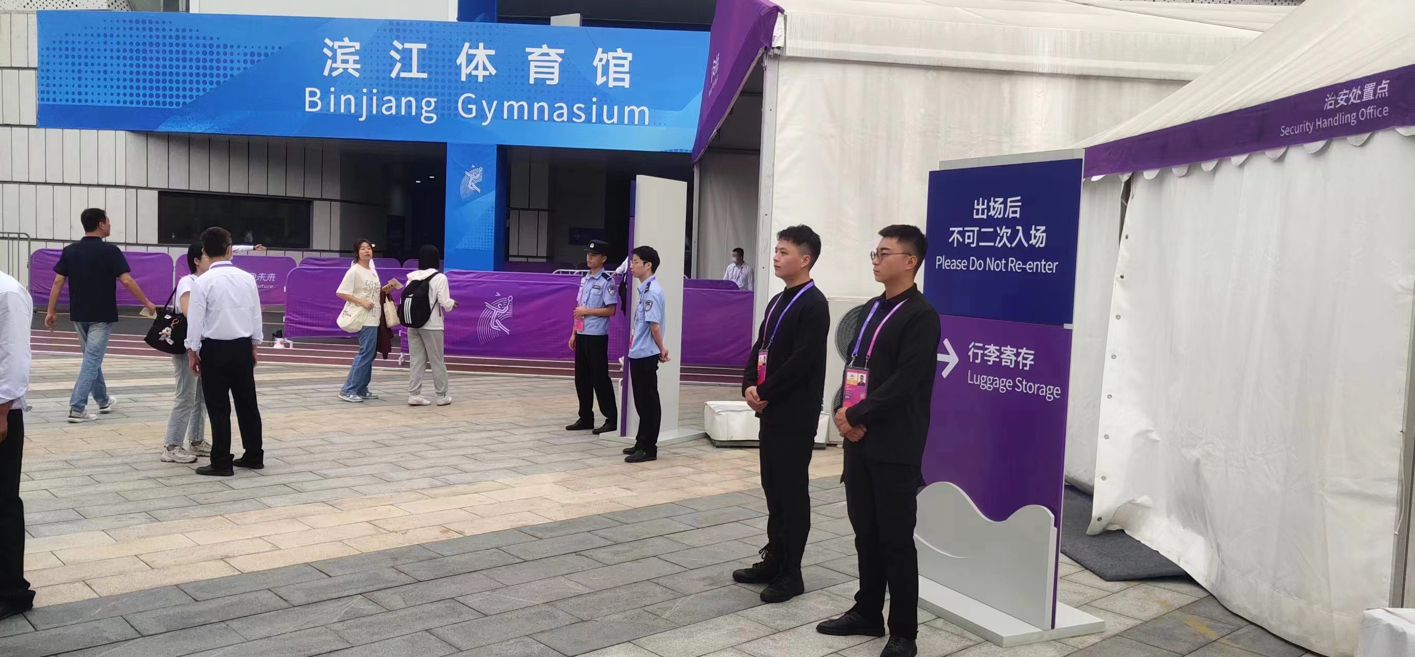 在杭州市濱江區(qū)濱江體育館、臨平區(qū)臨平體育中心體育館和余杭區(qū)杭州師范大學(xué)倉前校區(qū)體育館等場館外圍進(jìn)行巡查、引導(dǎo)車輛有序停車和維護(hù)現(xiàn)場安保秩序。