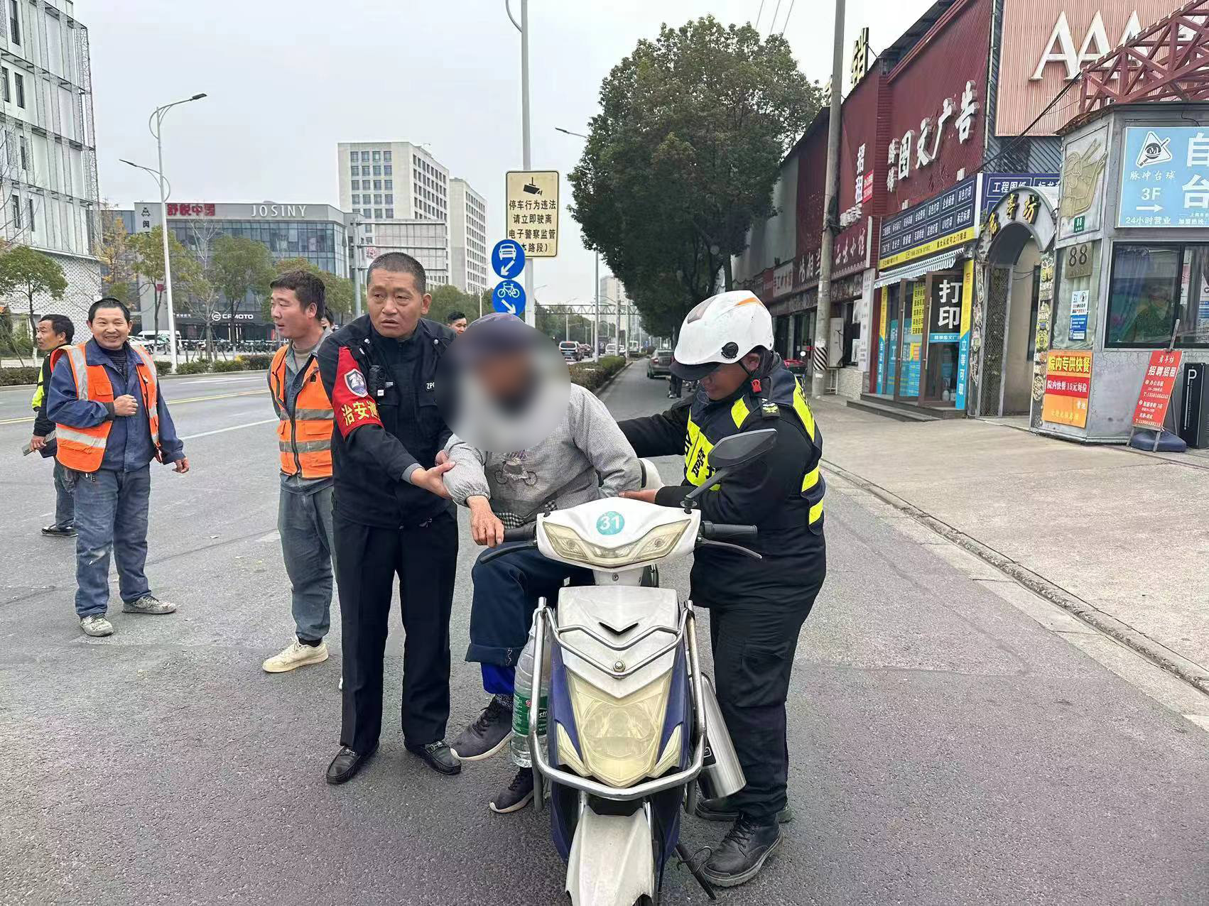 11月21日,浙江民泰公司駐杭州市臨平區(qū)運(yùn)河街道運(yùn)河交管項(xiàng)目員工幫助突發(fā)疾病老人就醫(yī)。