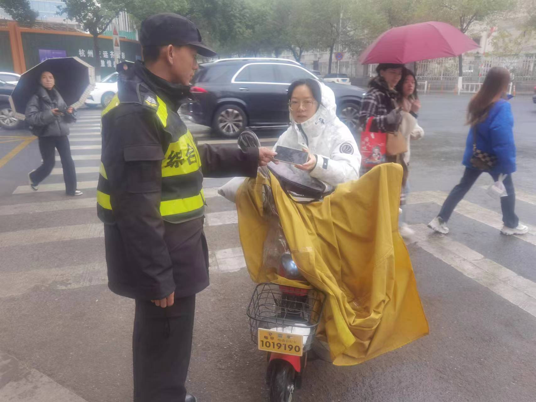 12月8日8:08,浙江民泰公司駐杭州市臨平區(qū)南苑市容項目員工趙賢在南苑街道銀泰城地鐵3號門附近巡查時,撿到一部紅米手機,報告組長后便在原地邊值勤邊等待失主。大約過了一個小時左右,一位中年女士趕到現(xiàn)場尋找手機。趙賢主動上前詢問,確認(rèn)其是失主后,就把手機交還給了她。女士拿著手機,連連向民泰員工趙賢表示感謝。