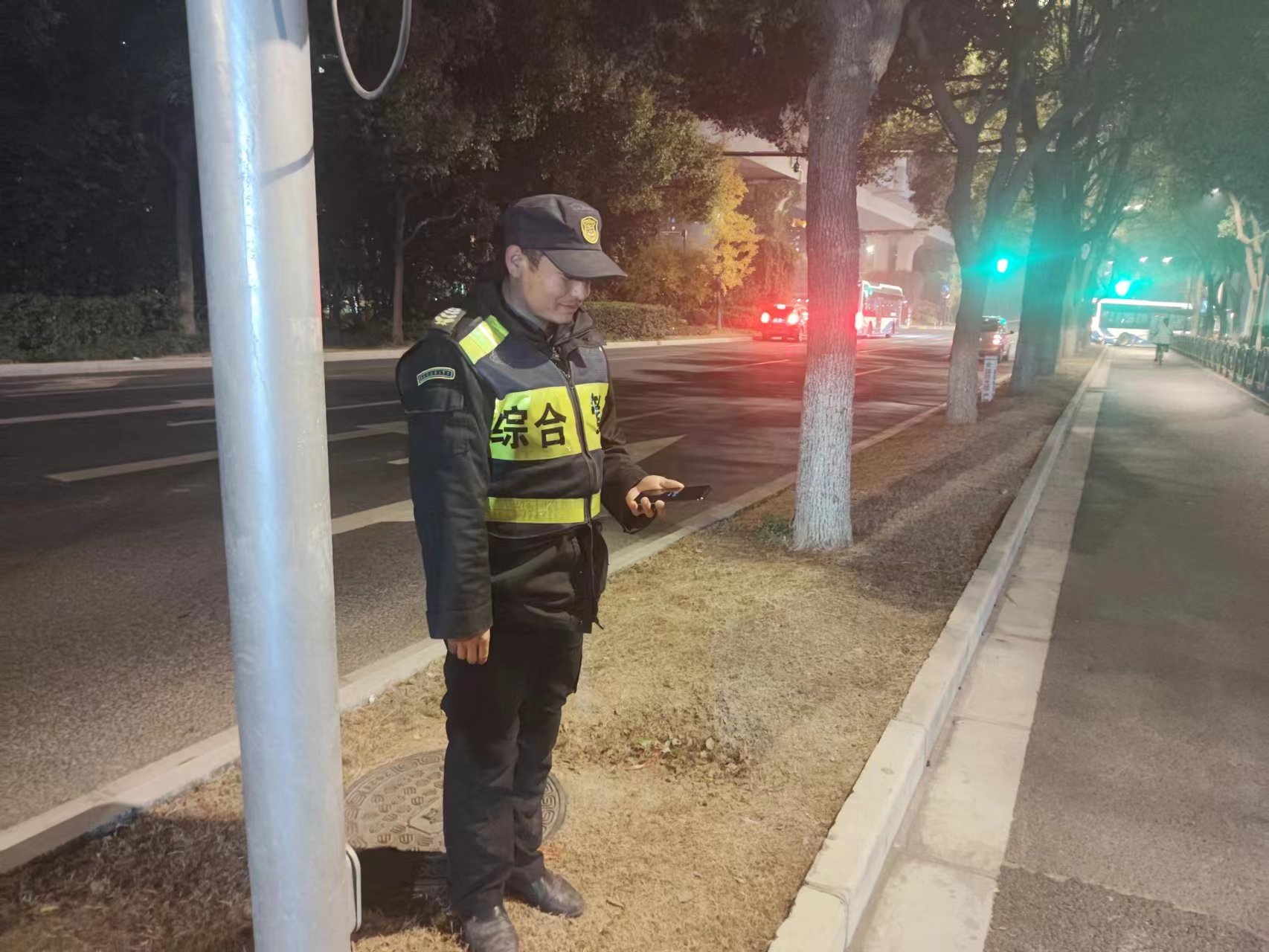 12月6日20:25,宗保公司駐浦東新區(qū)高行市容項目員工王偉偉、許新明和路志明在德愛路張楊北路附近巡查時,撿到一部黑色vivo手機,考慮到失主可能會返回尋找,3人便在原地等待。過了一會兒,一位自稱是失主的男子打來電話尋找手機,王偉偉便與他約好在德愛路張楊北路路口碰面。很快,一位中年男子趕到約定地點,通過成功解鎖鎖屏密碼,確認(rèn)男子是失主后,王偉偉就把手機交還給了他。為表示感謝,男子要發(fā)紅包給3人,被他們婉言謝絕了。臨走前,男子豎起大拇指,連連為宗保員工拾金不昧的行為點贊。