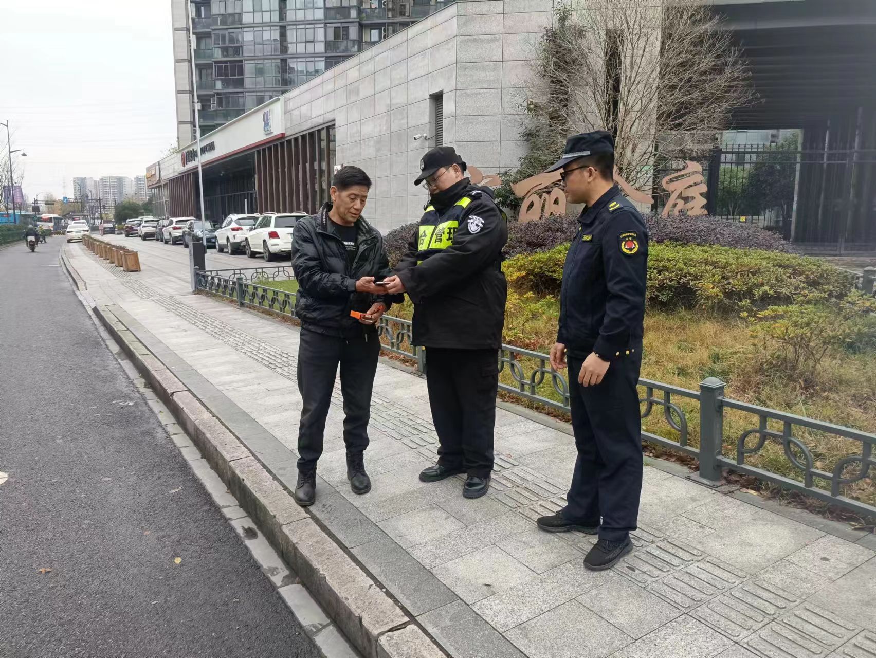 12月11日8:20,浙江民泰公司駐杭州市臨平區(qū)塘棲城管輔助項目員工周亞蛟巡查至綠茵街與塘棲路交叉口時,撿到一部OPPO手機,報告班組長后便在附近邊巡查邊等失主。12:40,一男子打來電話,聽語氣十分著急,周亞蛟告訴該男子不要擔(dān)心手機很安全,并與他約好見面時間地點。很快,一位中年男子趕到現(xiàn)場。周亞蛟通過該男子解鎖手機密碼,確認(rèn)其是失主后,就把手機交還給了他。為表示感謝,男子硬要塞兩包云端香煙給周亞蛟,被周亞蛟婉言謝絕了。