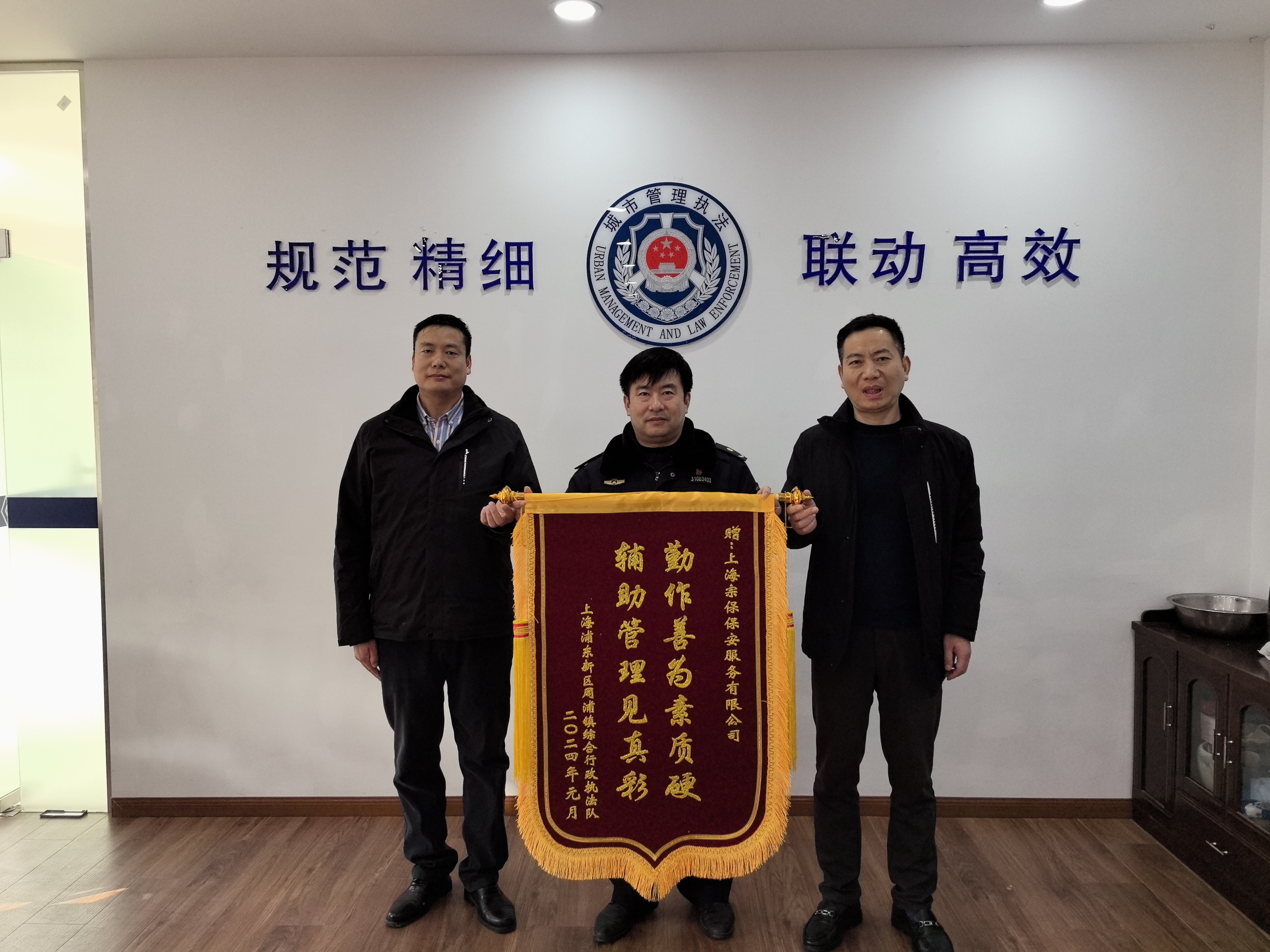 宗保公司收到浦東新區(qū)周浦鎮(zhèn)綜合行政執(zhí)法隊贈送的錦旗