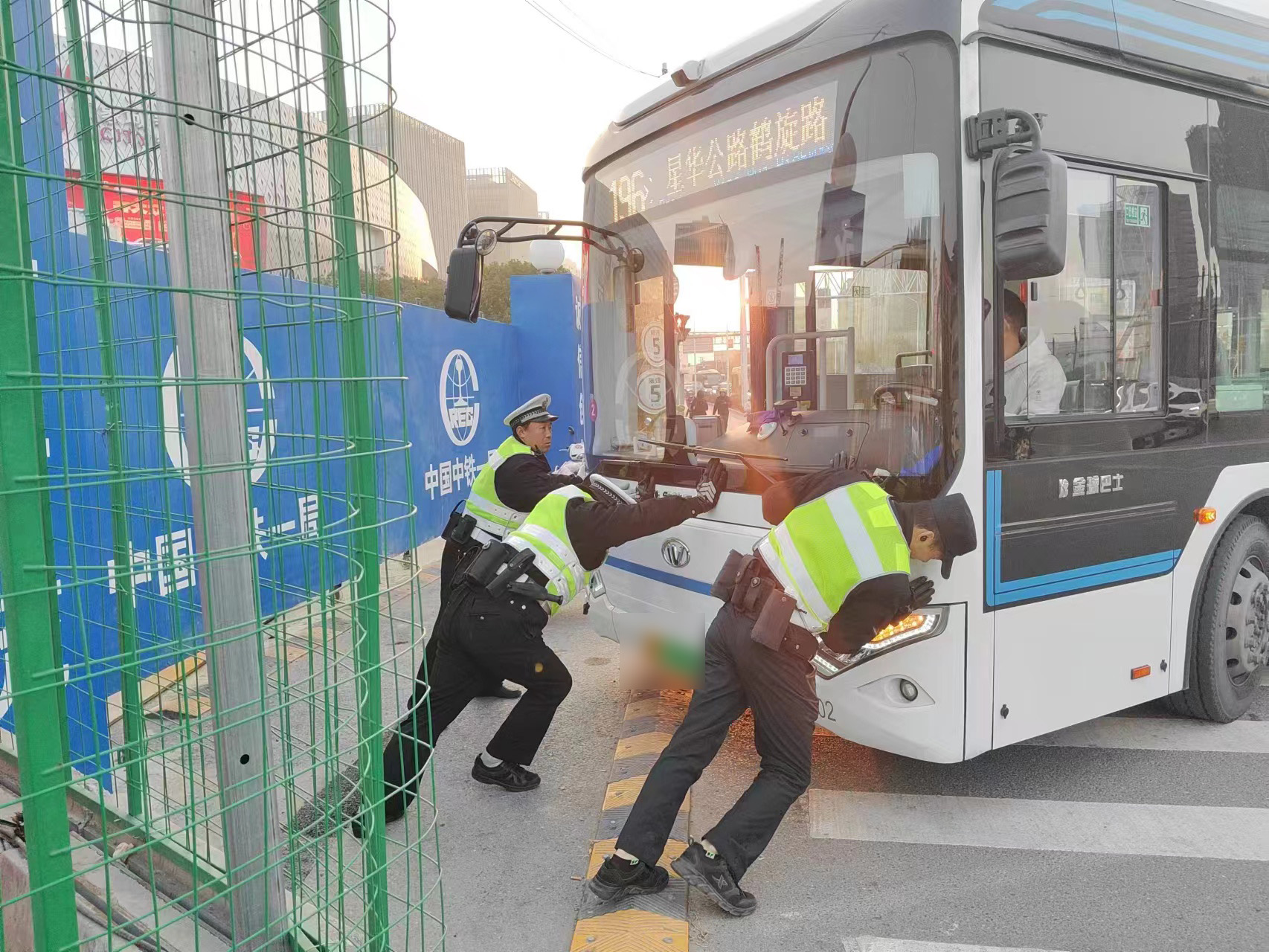 1月11日,宗保公司駐閔行區(qū)莘莊工業(yè)區(qū)項(xiàng)目員工熱心助人,將拋錨公交車推到路邊安全地帶。
