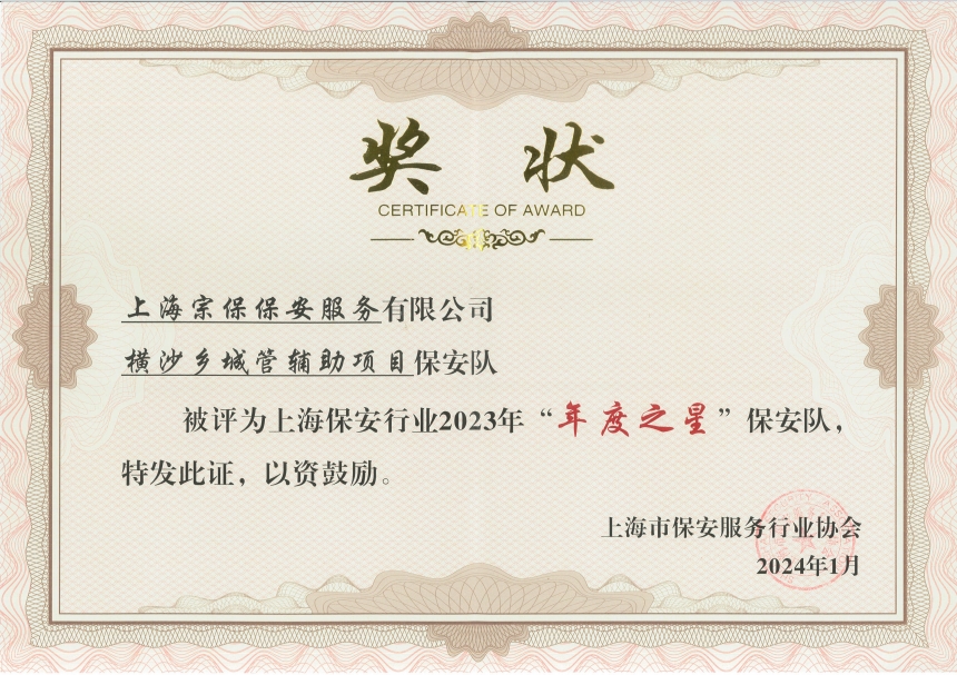 近日,上海市保安服務(wù)行業(yè)協(xié)會公布了2023年“年度之星”和第四季度“季度之星”評選結(jié)果,上海宗保保安服務(wù)有限公司3個保安隊和3名員工分獲殊榮。