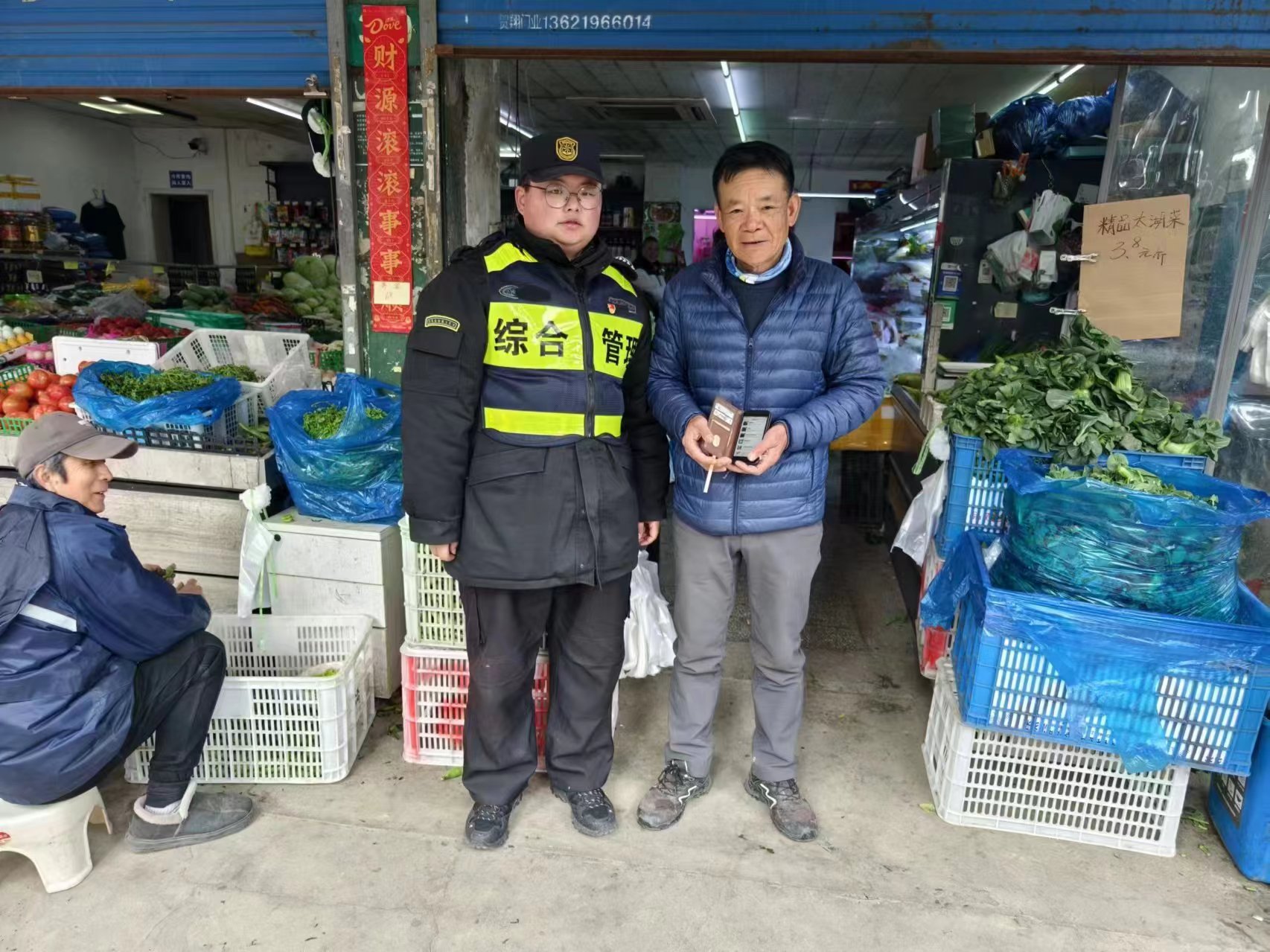 3月8日9:38,宗保公司駐浦東新區(qū)高橋市容項目員工鄭世豪巡查至清溪路360號附近時,撿到一部華為手機,報告帶班骨干后便在原地等待。過了半個小時左右,一位中年男子急急忙忙趕到現(xiàn)場,邊走邊看好像在尋找什么東西。鄭世豪見狀主動上前詢問,男子說他的手機在這附近掉了。鄭世豪詢問了男子手機的品牌、顏色等信息,見證他成功解鎖鎖屏確認其是失主后,將手機交還給了他。男子拿到手機,十分高興,連連向鄭世豪道謝。