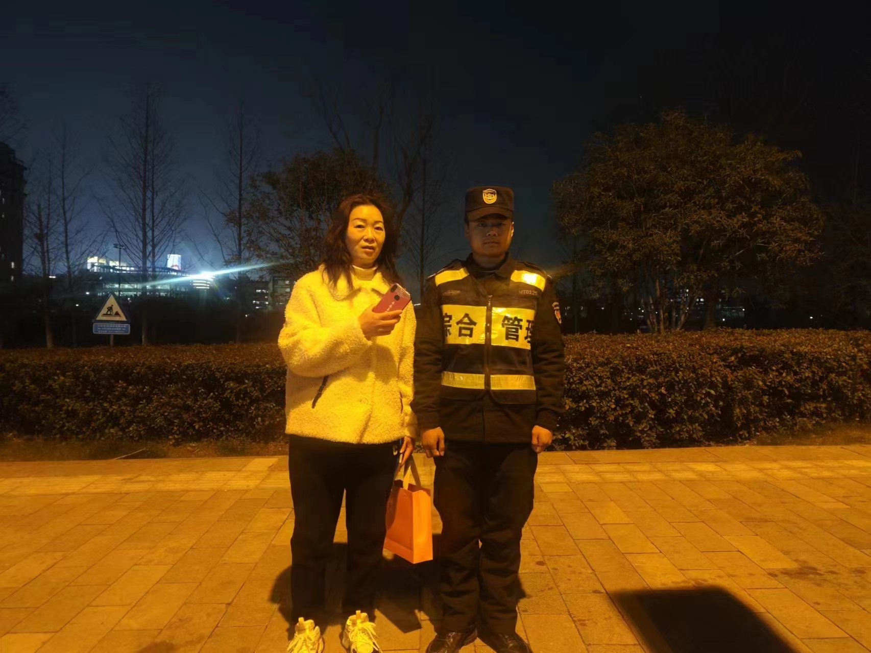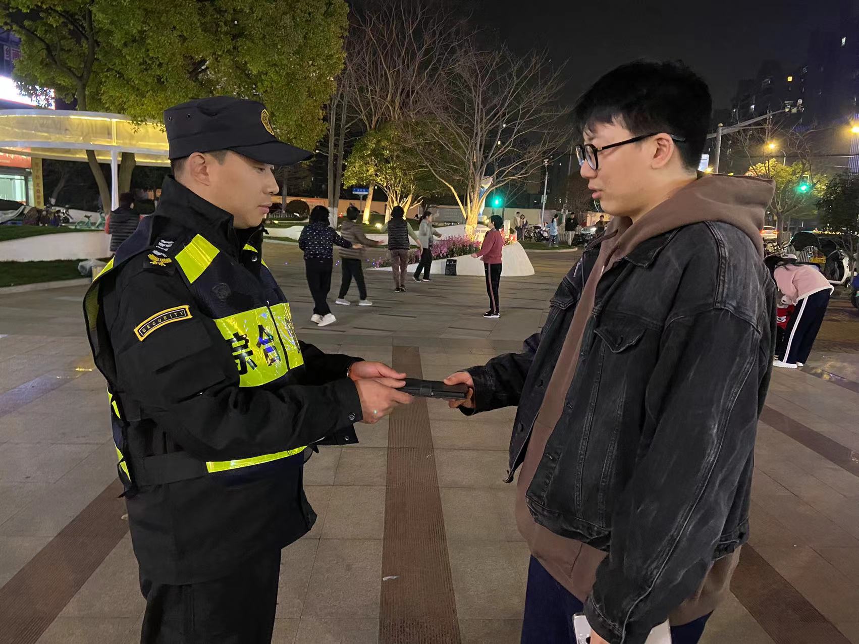 3月16日18:30,宗保公司駐浦東新區(qū)高行市容項目員工張濤巡查至雙橋路近金高路路口時,撿到一部紅米手機,隨即將情況報告了代班組長,并按指示在原地等待。大概過了5分鐘左右,一位自稱是失主的男子打來電話尋找手機,張濤詢問相關(guān)情況后便與男子約好碰面時間地點。很快,一位身穿牛仔外套的男子趕到現(xiàn)場,經(jīng)核實手機品牌、型號和鎖屏密碼無誤后,張濤將手機交還給了他。男子拿到手機十分高興,連連向宗保員工道謝。