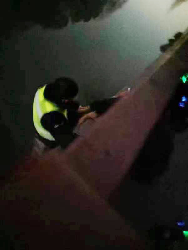 當日23:44,公司員工薛峰崗和馬新強巡邏時接到虹橋指揮室指令,稱新涇港河有一名醉酒男子欲跳河輕生,請立即前往救助。兩人聞訊立即趕到事發(fā)地點,發(fā)現(xiàn)一男子已翻過河堤護欄,將要掉入河中。薛峰崗和馬新強見狀快步上前緊緊抓住男子手臂,并將情況報告虹橋指揮室,同時呼叫附近同事前來支援。