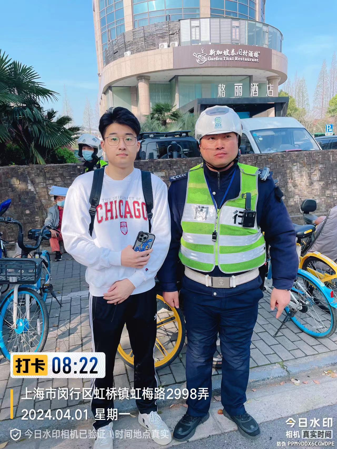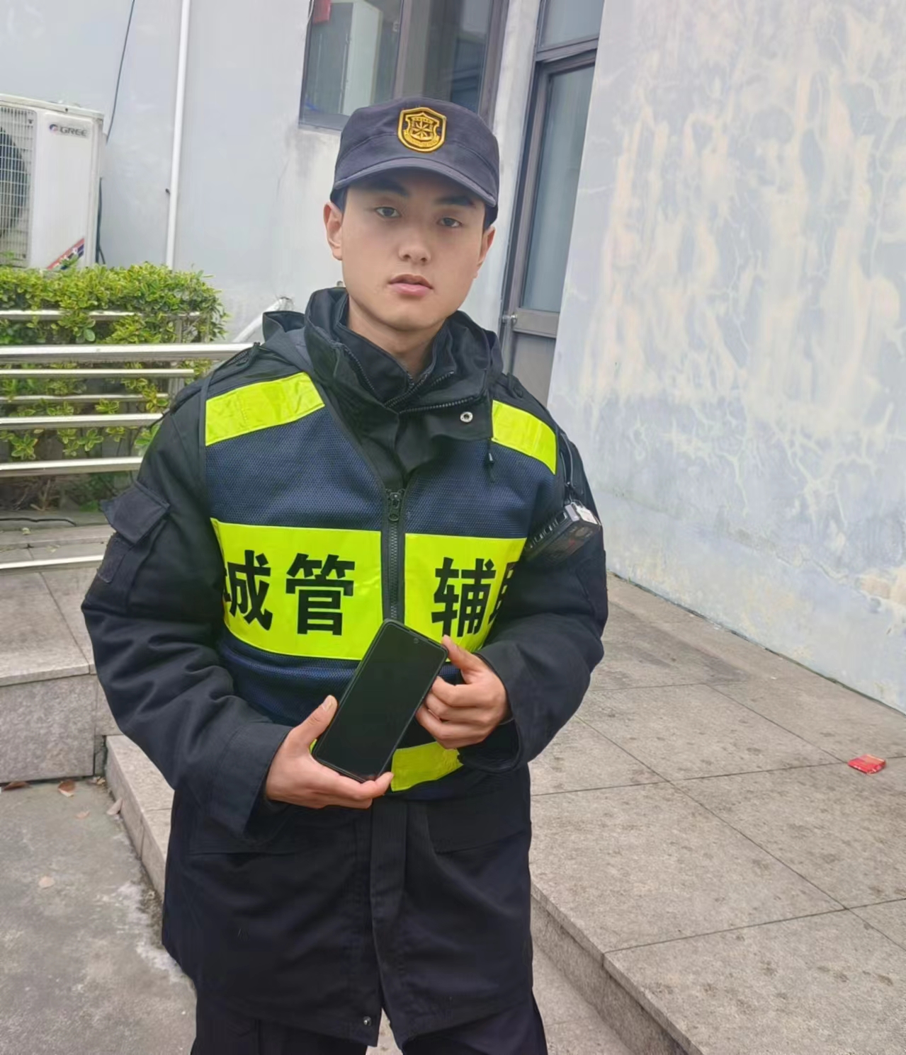 4月1日8:17,宗保公司駐閔行區(qū)虹橋交管輔助項(xiàng)目員工何希權(quán)在吳美路與虹許路路口執(zhí)勤時,撿到一部蘋果手機(jī)。詢問周圍人員無果后,便將情況報告了帶班隊(duì)長,并按指示在原地等待。過了幾分鐘,一位身穿白色衛(wèi)衣的小伙子焦急地趕到現(xiàn)場,說自己的手機(jī)在這附近掉了,同時描述了手機(jī)的品牌、外觀等細(xì)節(jié)。何希權(quán)初步判斷所撿手機(jī)與小伙子描述的基本一致,就讓小伙子解鎖。小伙子成功解鎖手機(jī)后,何希權(quán)將手機(jī)交還給了他。小伙子十分高興,拿著手機(jī)連連向何希權(quán)道謝。