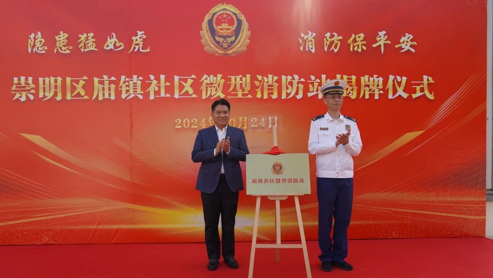 10月24日上午,崇明區(qū)廟鎮(zhèn)社區(qū)微型消防站舉行揭牌儀式,宗保公司作為配合建設單位參加揭牌儀式。廟鎮(zhèn)黨委書記陳建飛、崇明區(qū)消防支隊支隊長車斌共同為消防站揭牌。