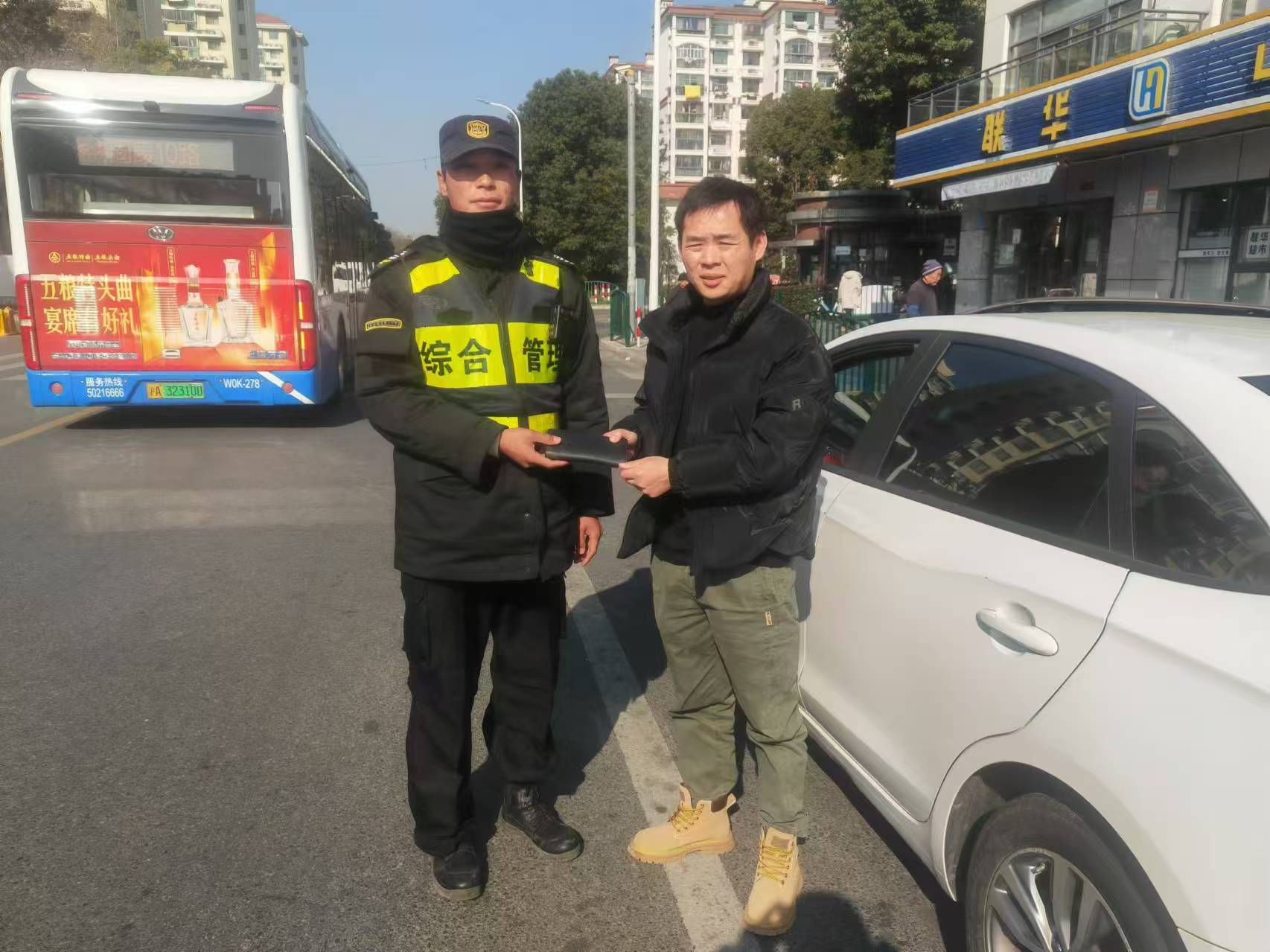 12月20日11:40,宗保公司駐浦東新區(qū)康橋市容項目員工陸成躍在環(huán)橋路1488弄文怡苑小區(qū)巡查時,撿到一個黑色錢包,內(nèi)有7張銀行卡、一張身份證、一張社保卡和535元現(xiàn)金,報告項目隊長后便在原地等待。