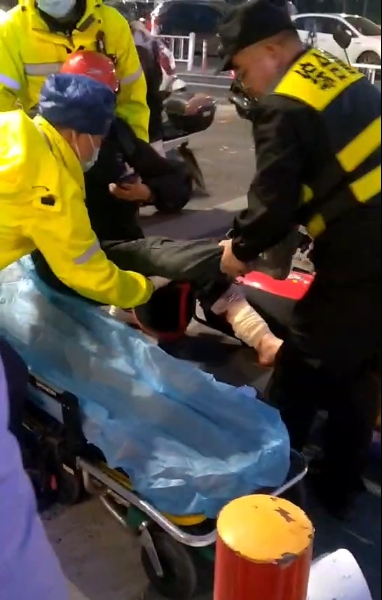 很快,120急救車趕到現(xiàn)場,但該女士已經(jīng)陷入昏迷狀態(tài),醫(yī)護(hù)人員初步診斷其為左腿骨折,對其進(jìn)行了緊急處理。隨后,李建軍又協(xié)助醫(yī)護(hù)人員將女士抬上救護(hù)車,送往醫(yī)院救治。