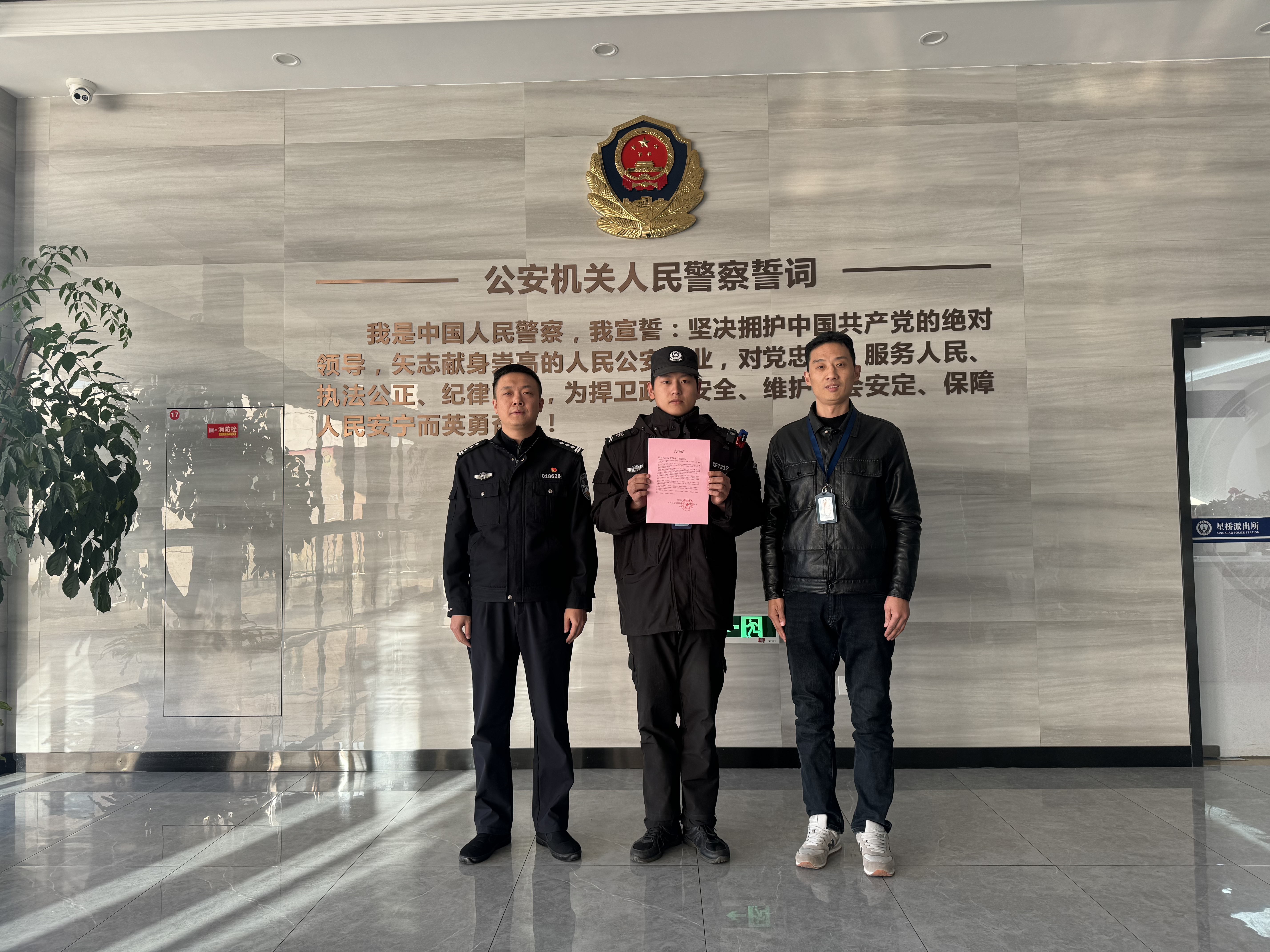 04浙江民泰公司收到杭州市公安局臨平區(qū)分局星橋派出所的表揚(yáng)信
