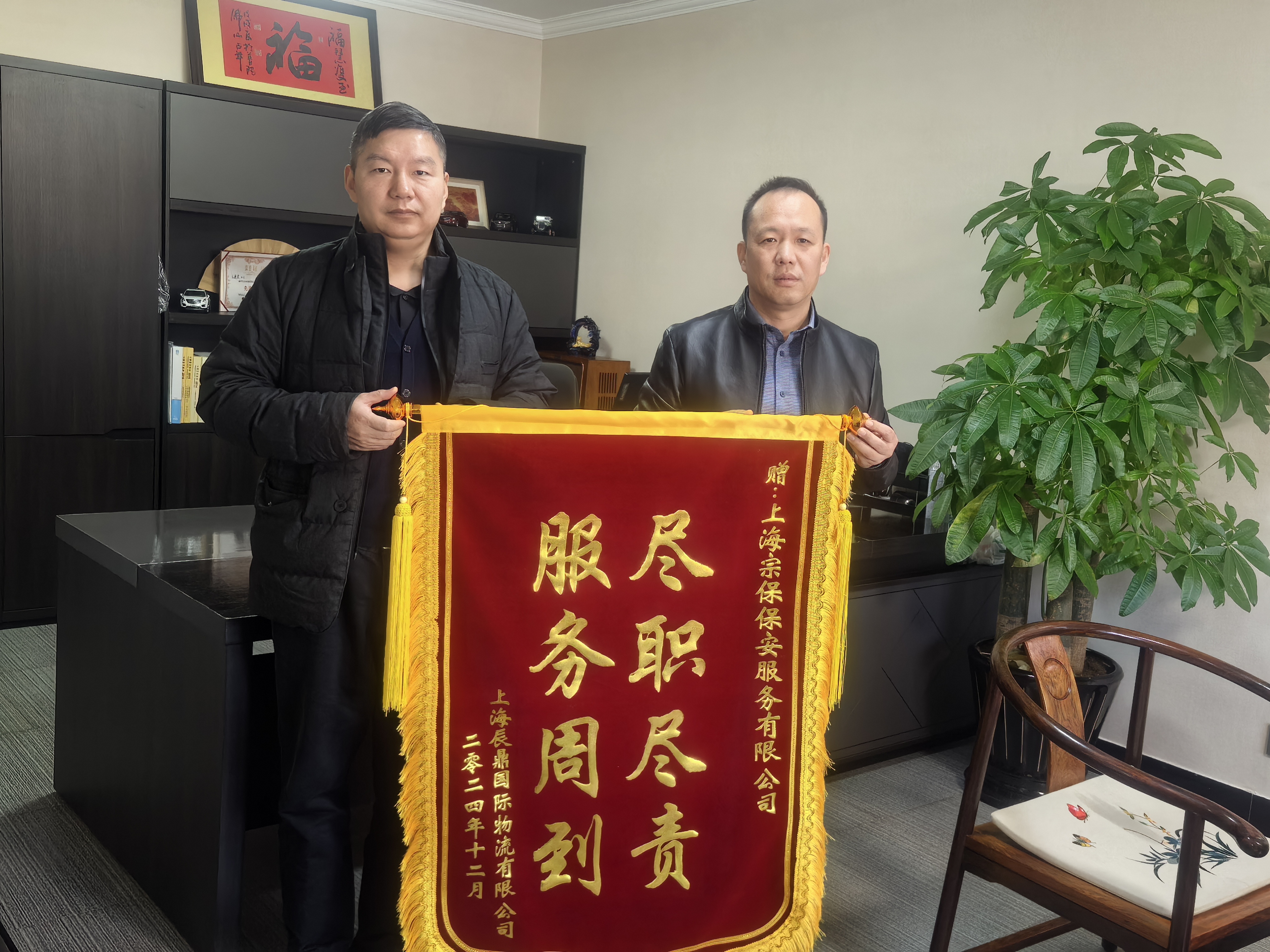 1月17日,宗保公司收到國瑞供應(yīng)鏈管理(上海)有限公司贈送的一面繡有“盡心盡責(zé) 心系業(yè)主”的錦旗,感謝公司員工付出的辛勤勞動,希望公司員工為守護(hù)國瑞供應(yīng)鏈管理(上海)有限公司高質(zhì)量發(fā)展作出新的貢獻(xiàn)。