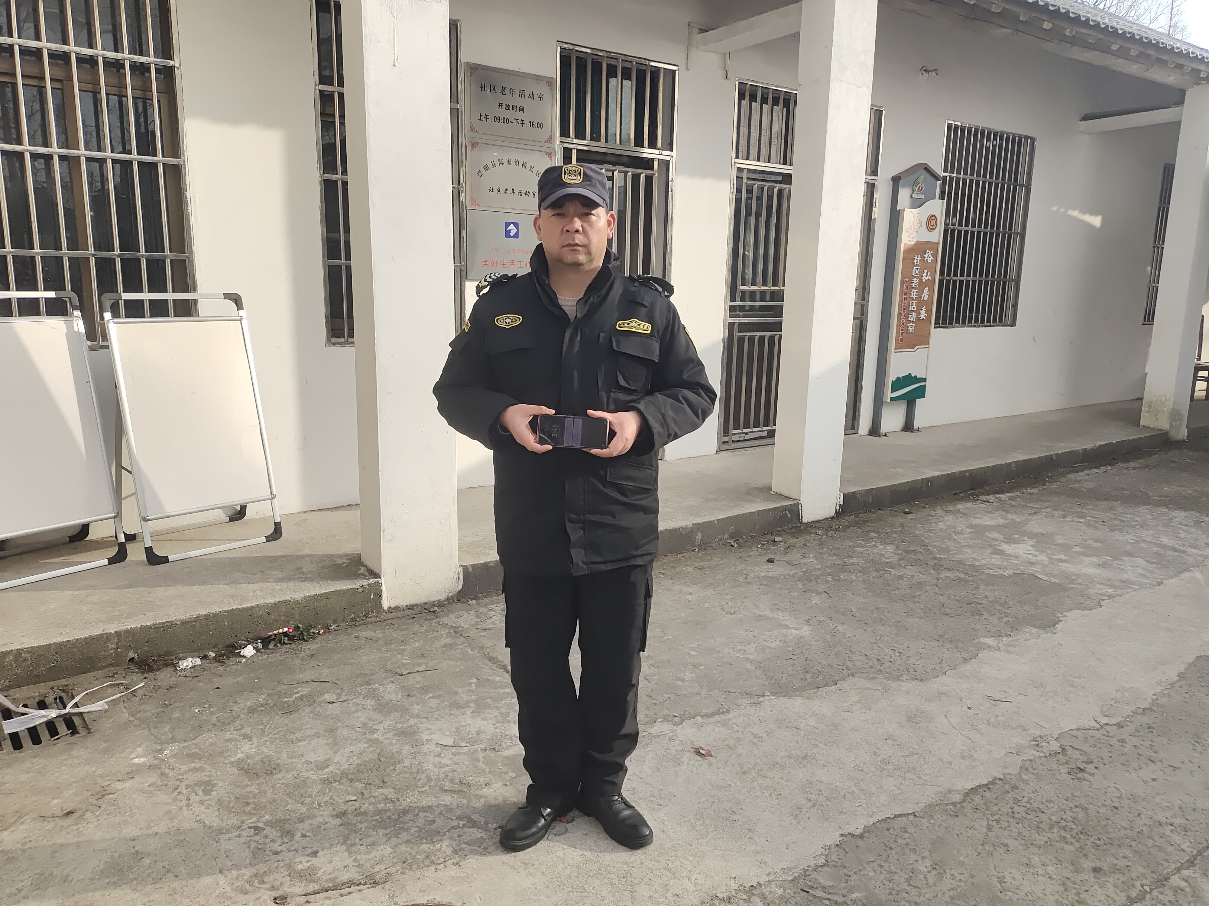 大概15分鐘后,正在值勤的周會達聽聞一小伙子在焦急地尋找手機,便主動上前詢問。當其發(fā)現(xiàn)小伙子描述的手機特征與他撿到的手機高度吻合時,便立即帶著小伙子前往保安亭領取。