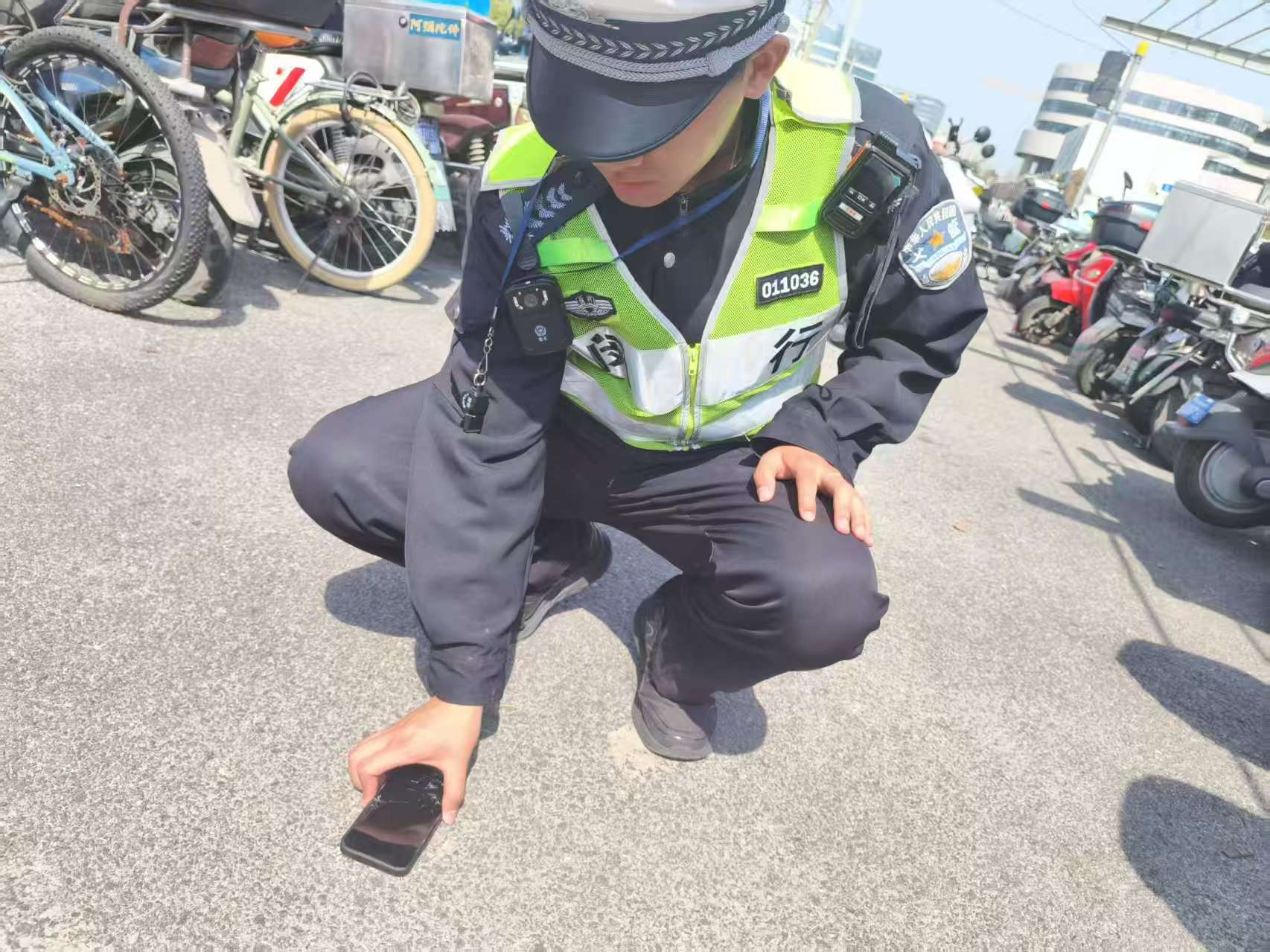 大約過了五六分鐘,一位騎著電瓶車的女子神色焦急地趕到現(xiàn)場,左顧右盼地好像尋找物品。王祥見狀主動上前詢問,女子表示自己的手機(jī)剛剛不慎丟失了。