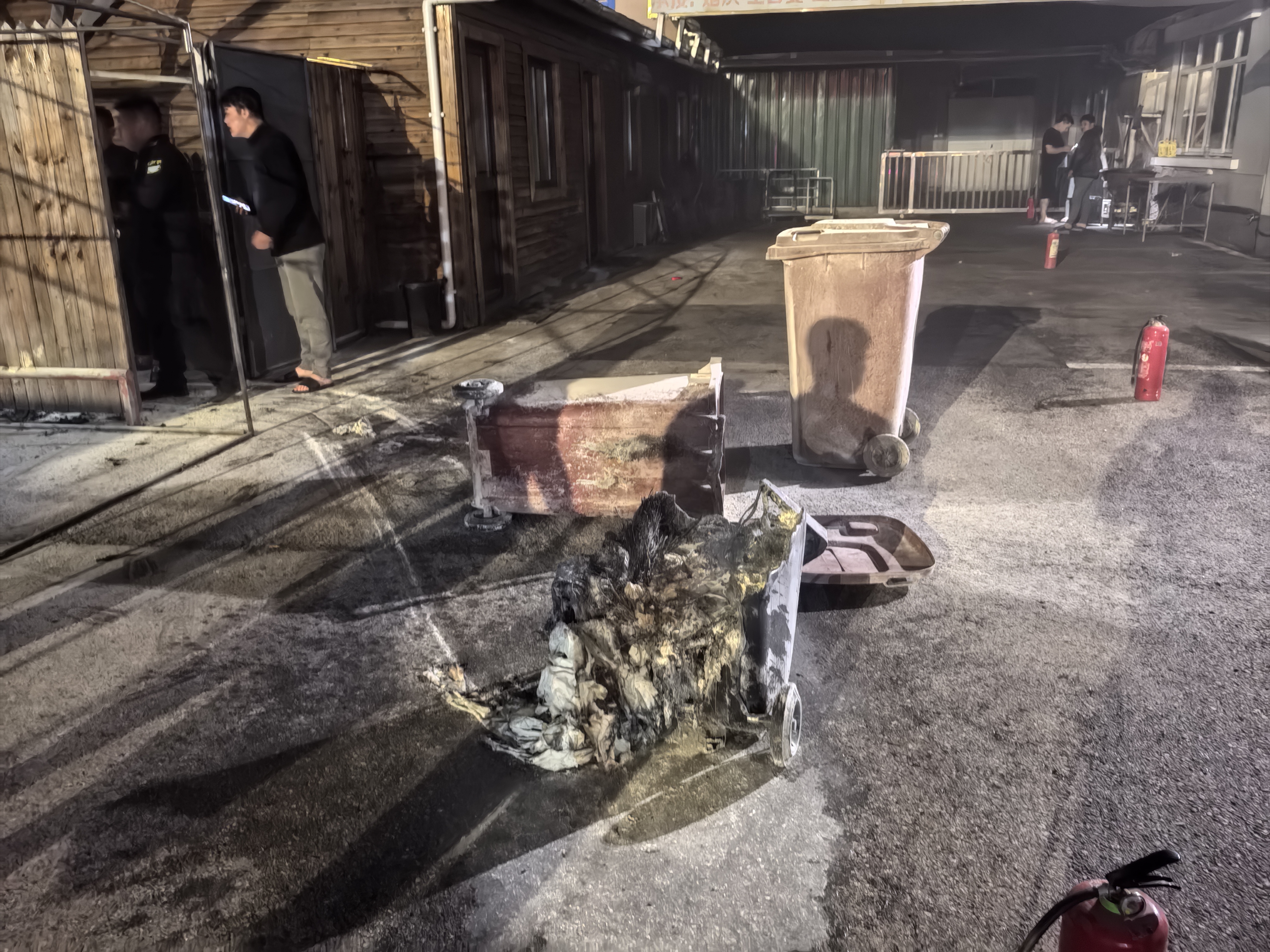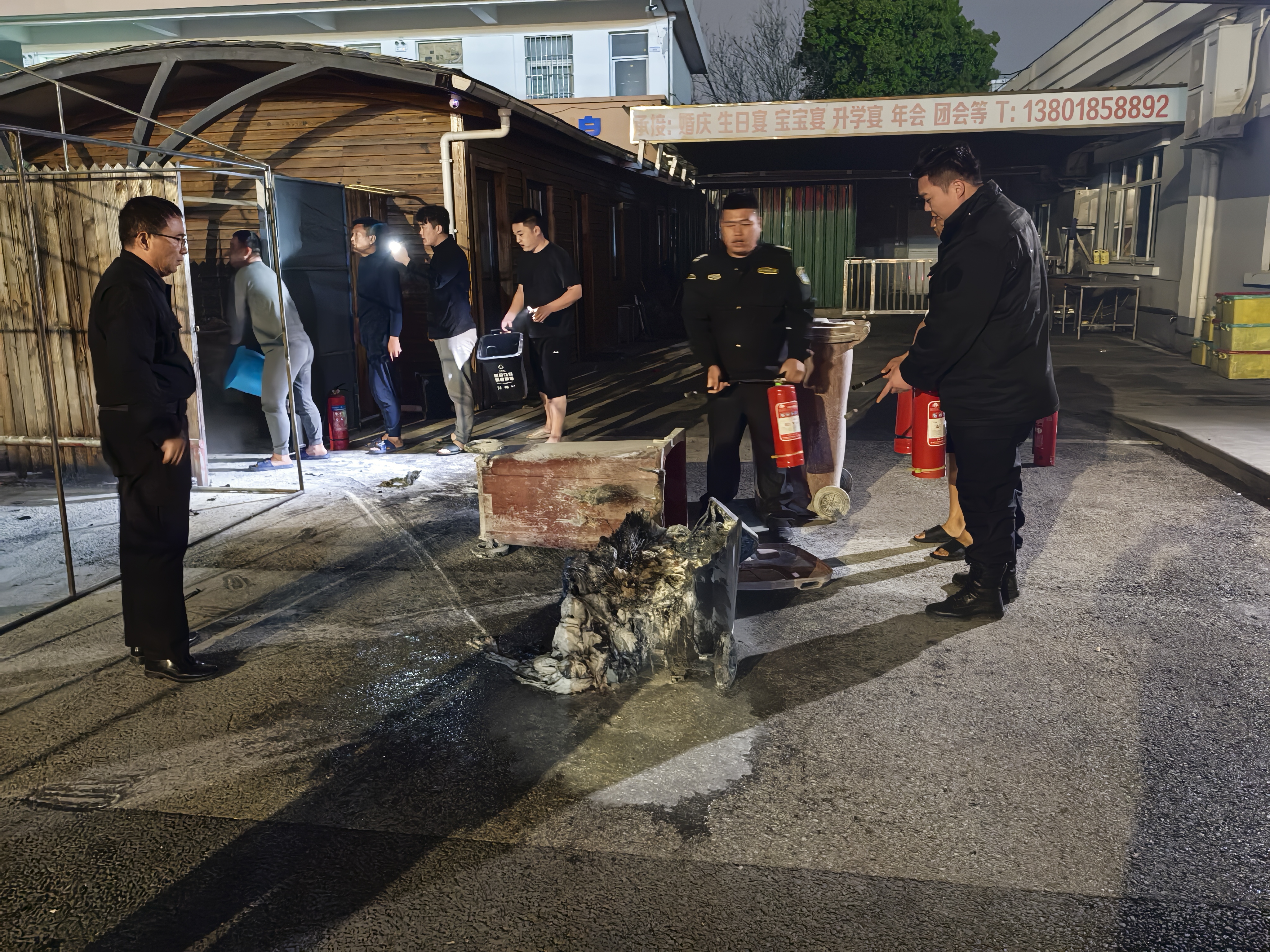 當(dāng)晚21:08,公司員工徐晴第一時(shí)間發(fā)現(xiàn)火情,立即報(bào)告隊(duì)長(zhǎng)并大聲呼喊同事支援。數(shù)名員工迅速提起滅火器沖向火場(chǎng),但由于活動(dòng)中心電動(dòng)伸縮門緊閉,救援行動(dòng)一度受阻。危急時(shí)刻,兩名員工毫不猶豫翻墻進(jìn)入火場(chǎng),先行展開撲救,其余隊(duì)員則合力推開伸縮門,攜帶滅火器材迅速增援。經(jīng)過數(shù)分鐘的緊張撲救,明火被徹底撲滅,現(xiàn)場(chǎng)無人員傷亡。