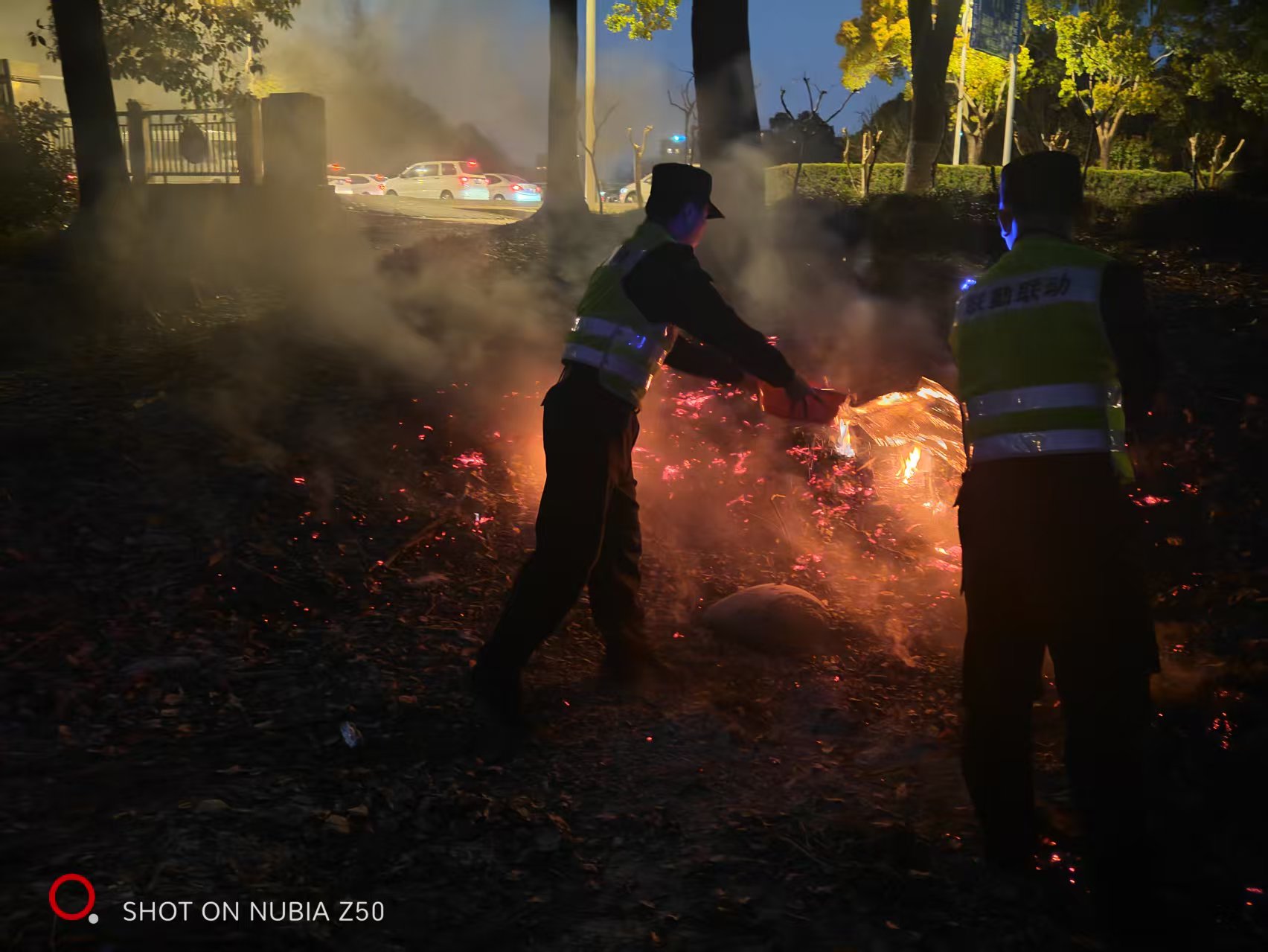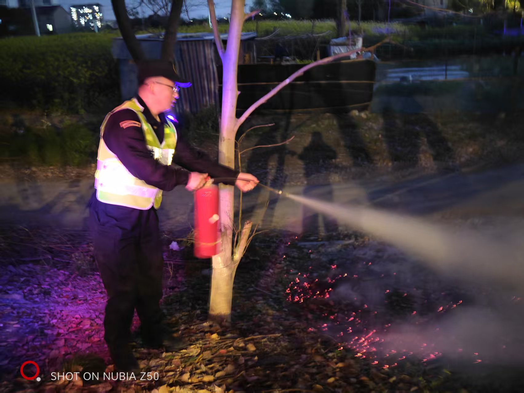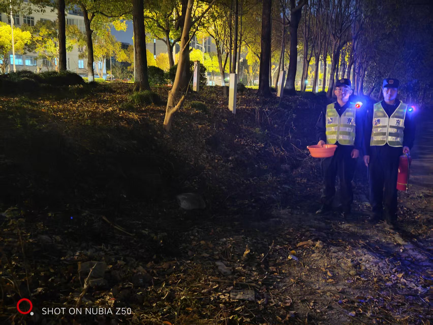 4月3日晚,宗保公司駐浦東新區(qū)周東派出所輔助項(xiàng)目員工景鵬鑫、李博文在巡邏過程中及時(shí)發(fā)現(xiàn)并成功撲滅一起綠化帶火情。