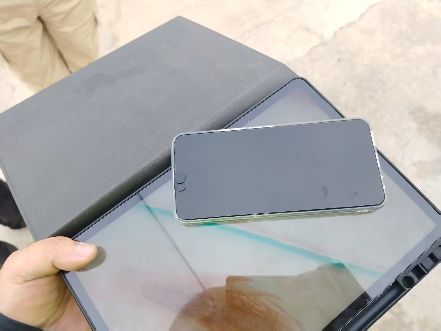 經(jīng)檢查,平板電腦套內(nèi)夾層有銀行卡、身份證、現(xiàn)金及名片。班長迅速通過名片聯(lián)系到失主,并約定見面地點(diǎn)。